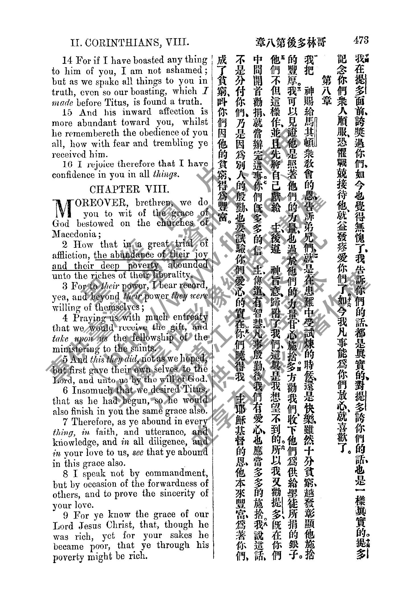 1885年新約全書 哥林多後書 7 章 14 節到 8 章 9 節