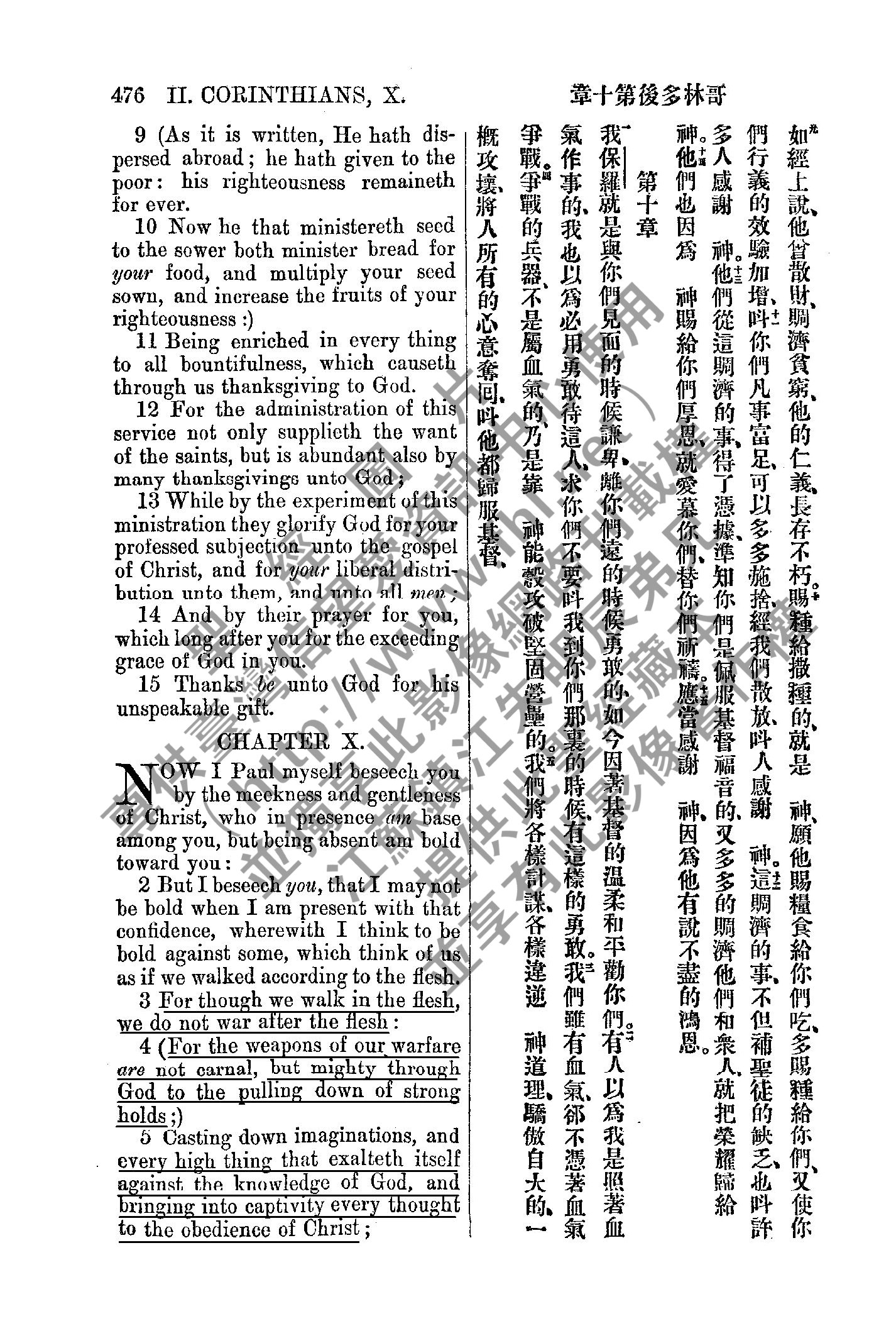 1885年新約全書 哥林多後書 9 章 9 節到 10 章 5 節