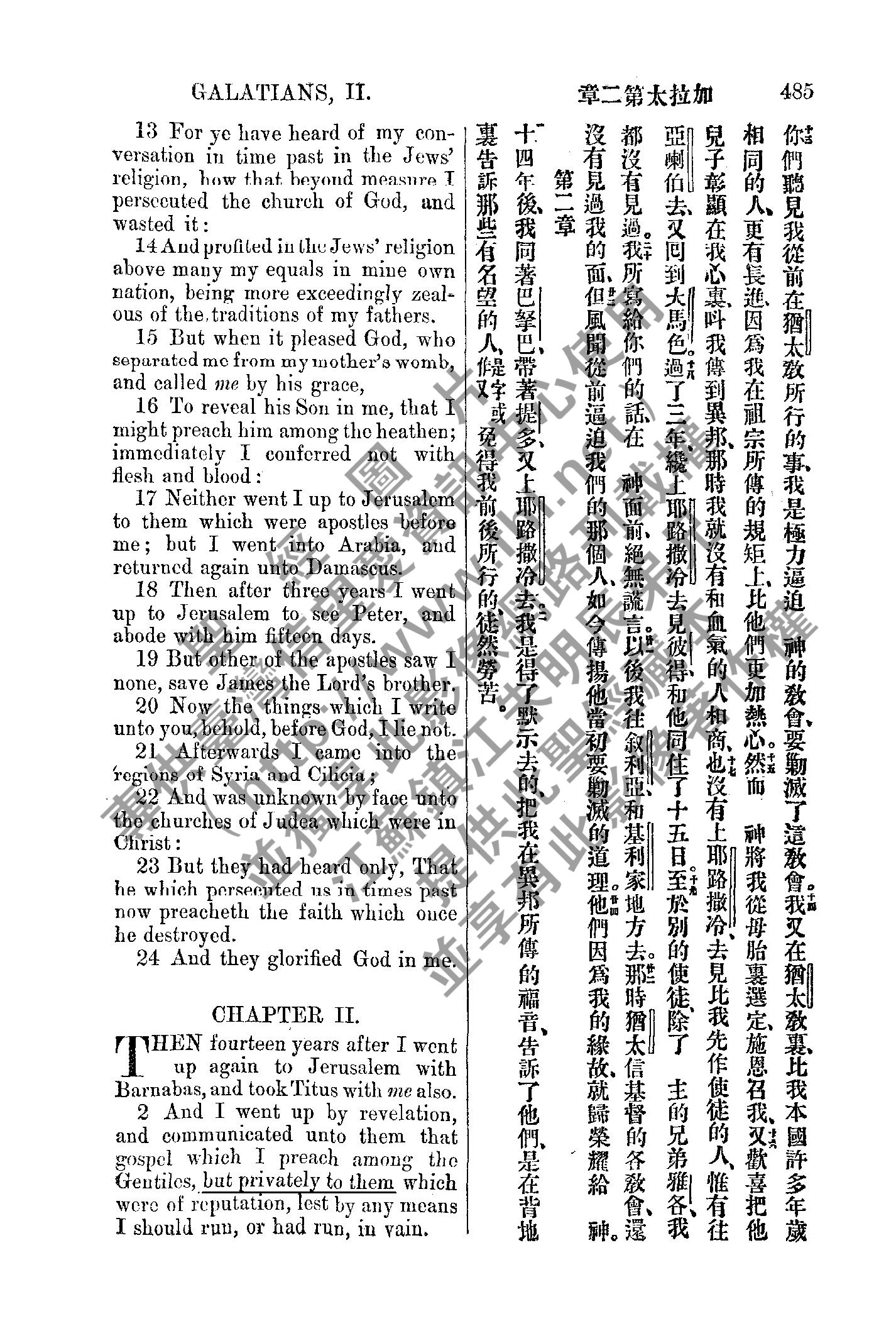 1885年新約全書 加拉太書 1 章 13 節到 2 章 2 節