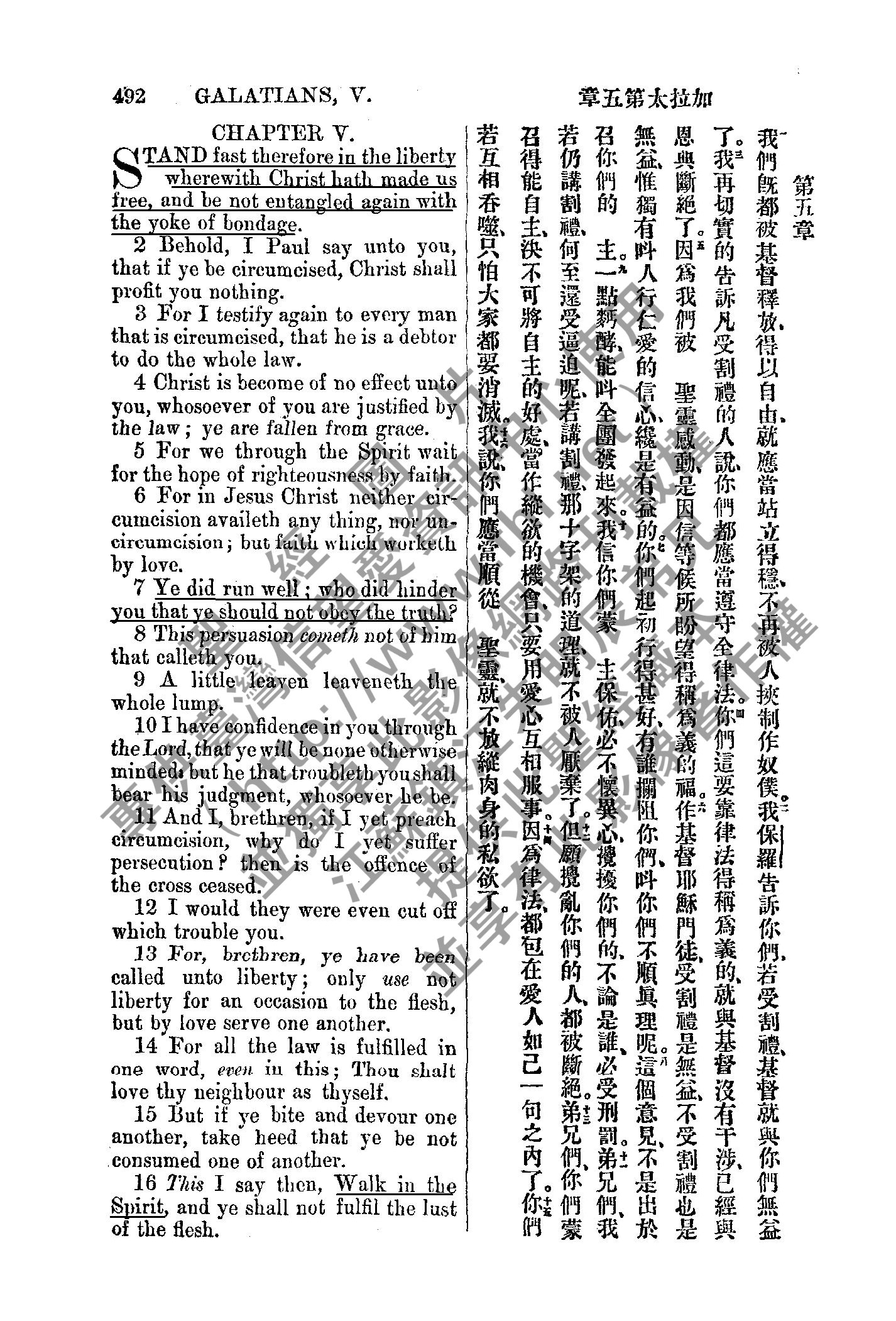 1885年新約全書 加拉太書 5 章 1 節到 5 章 16 節