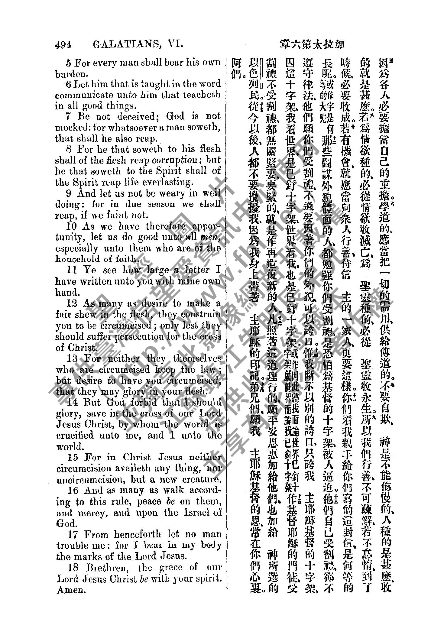 1885年新約全書 加拉太書 6 章 5 節到 6 章 18 節