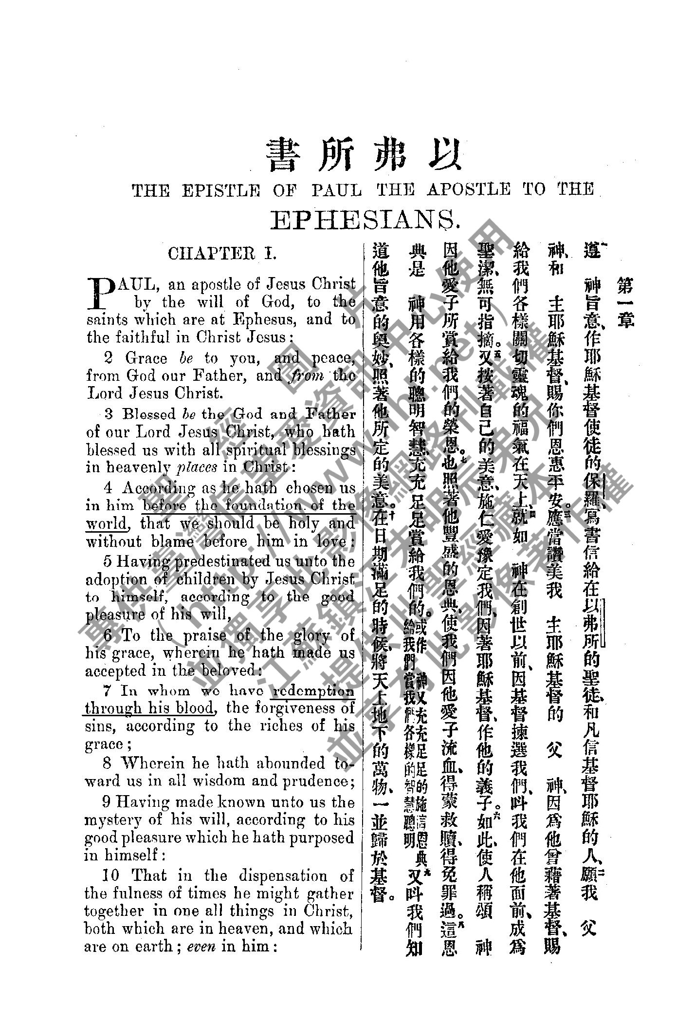 1885年新約全書 以弗所書 1 章 1 節到 1 章 10 節