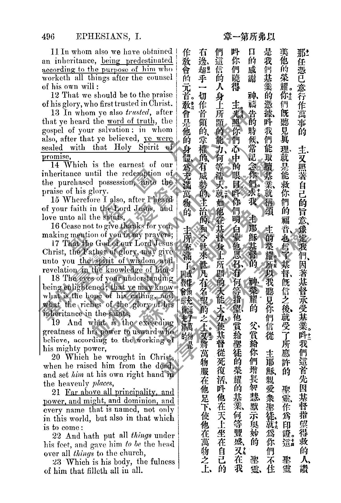 1885年新約全書 以弗所書 1 章 11 節到 1 章 23 節