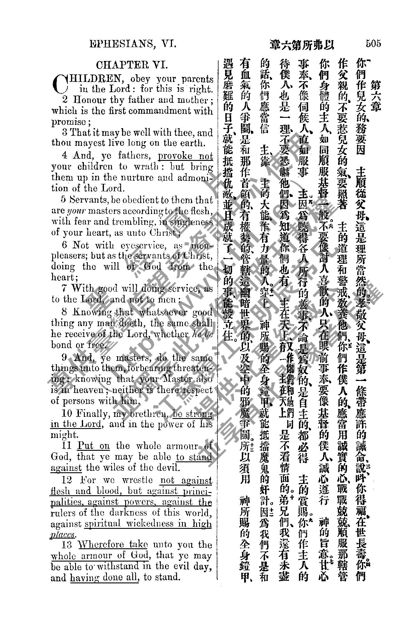 1885年新約全書 以弗所書 6 章 1 節到 6 章 13 節