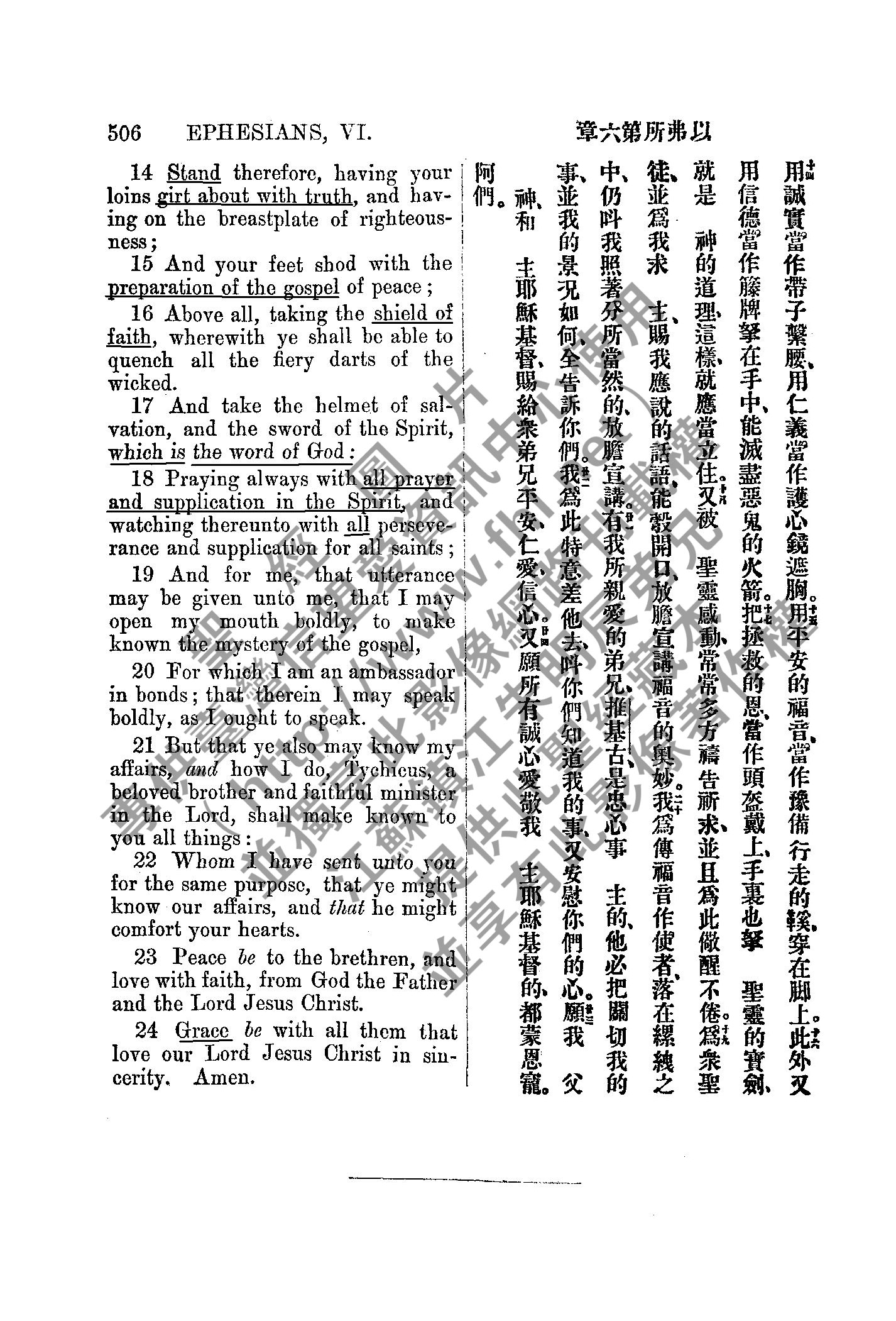 1885年新約全書 以弗所書 6 章 14 節到 6 章 24 節