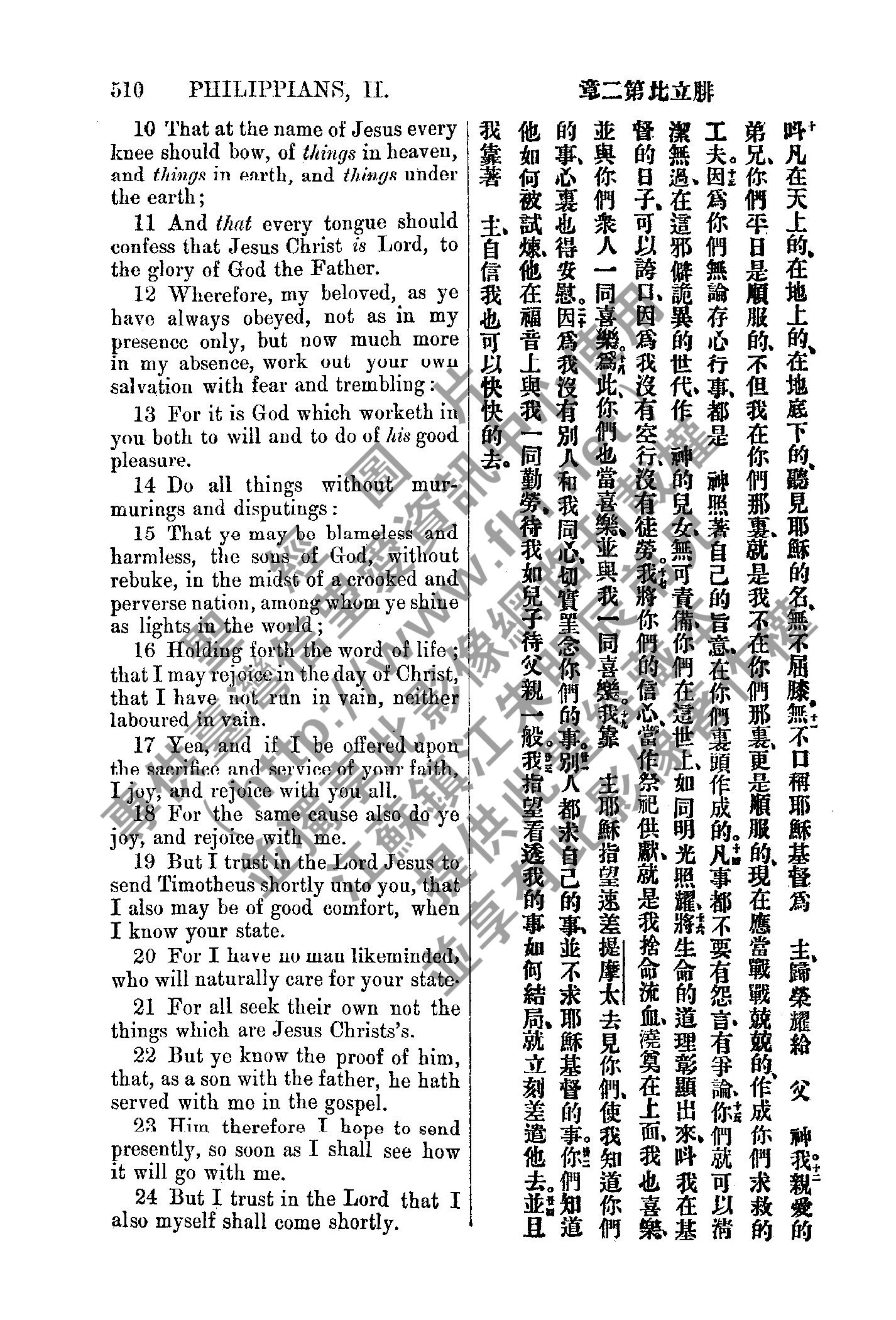 1885年新約全書 腓立比書 2 章 9 節到 2 章 24 節