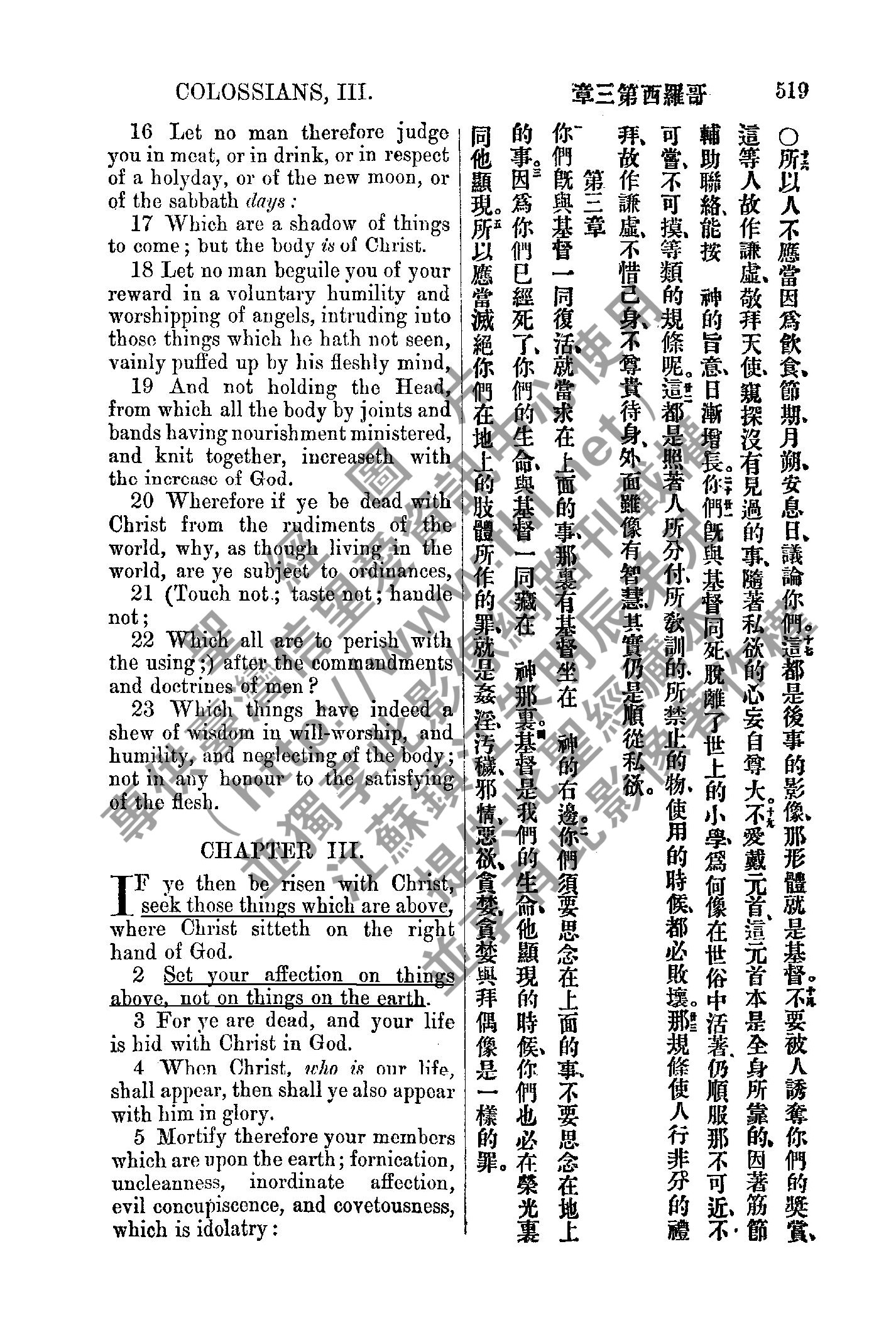1885年新約全書 歌羅西書 2 章 16 節到 3 章 5 節