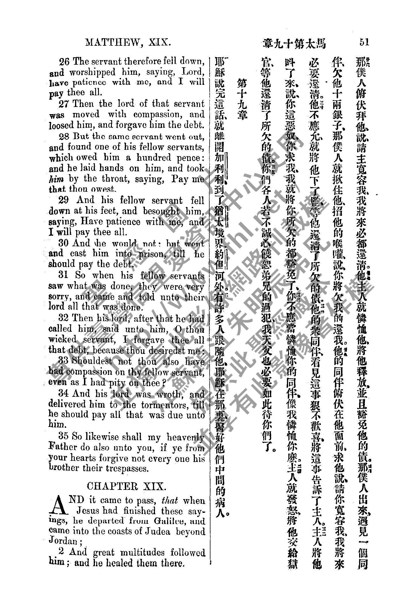 1885年新約全書 馬太福音 18 章 27 節到 19 章 2 節