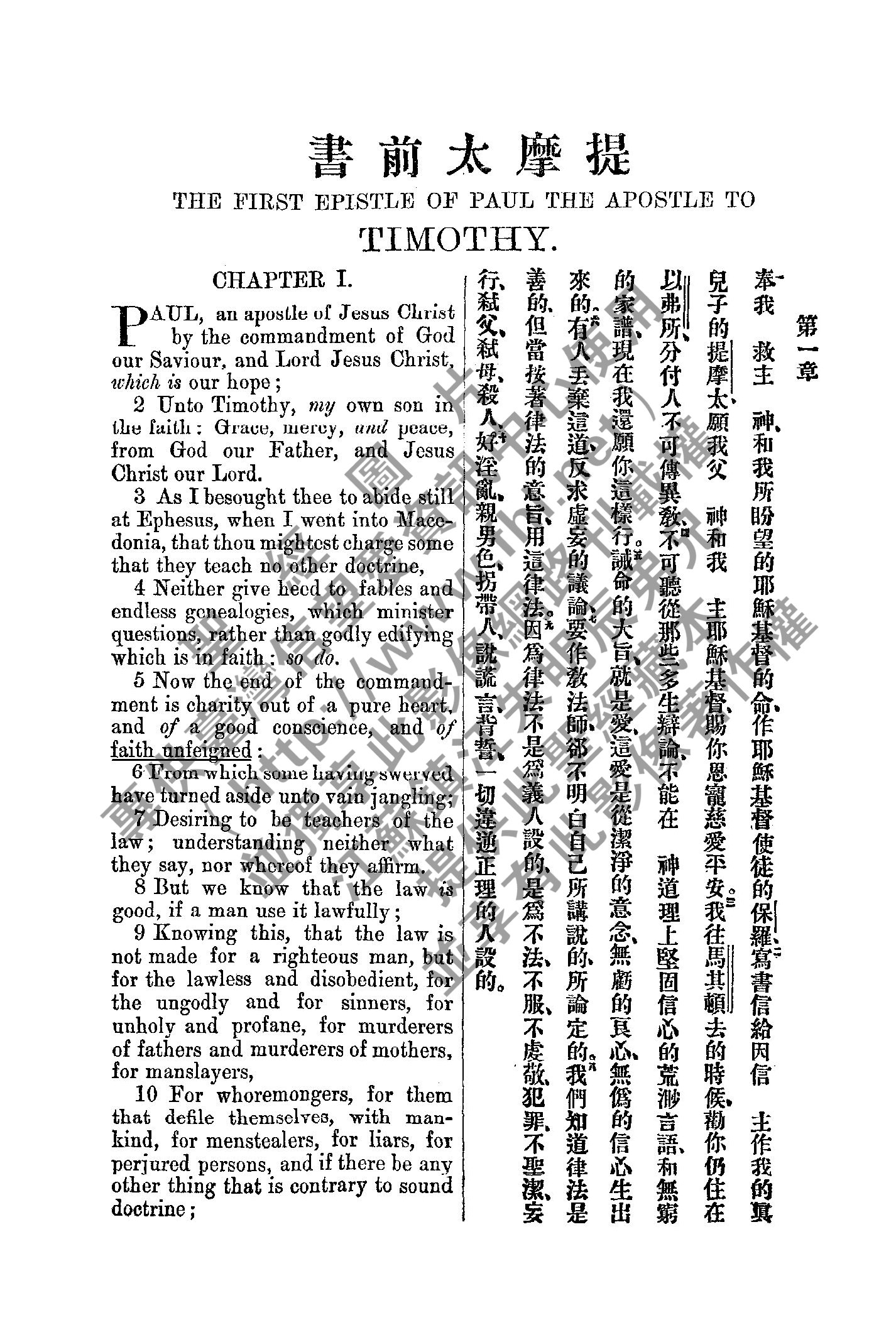 1885年新約全書 提摩太前書 1 章 1 節到 1 章 9 節