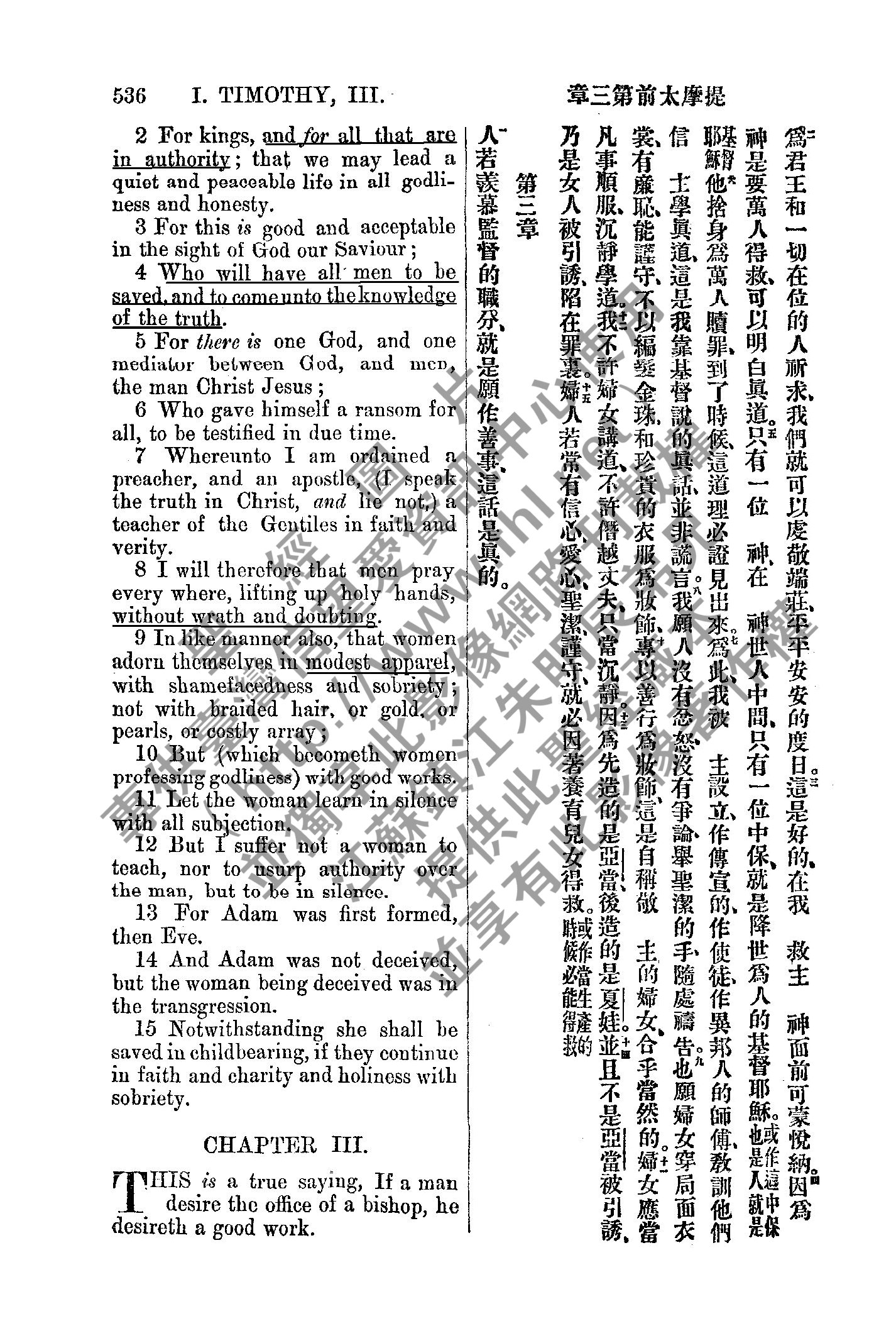 1885年新約全書 提摩太前書 2 章 2 節到 3 章 1 節