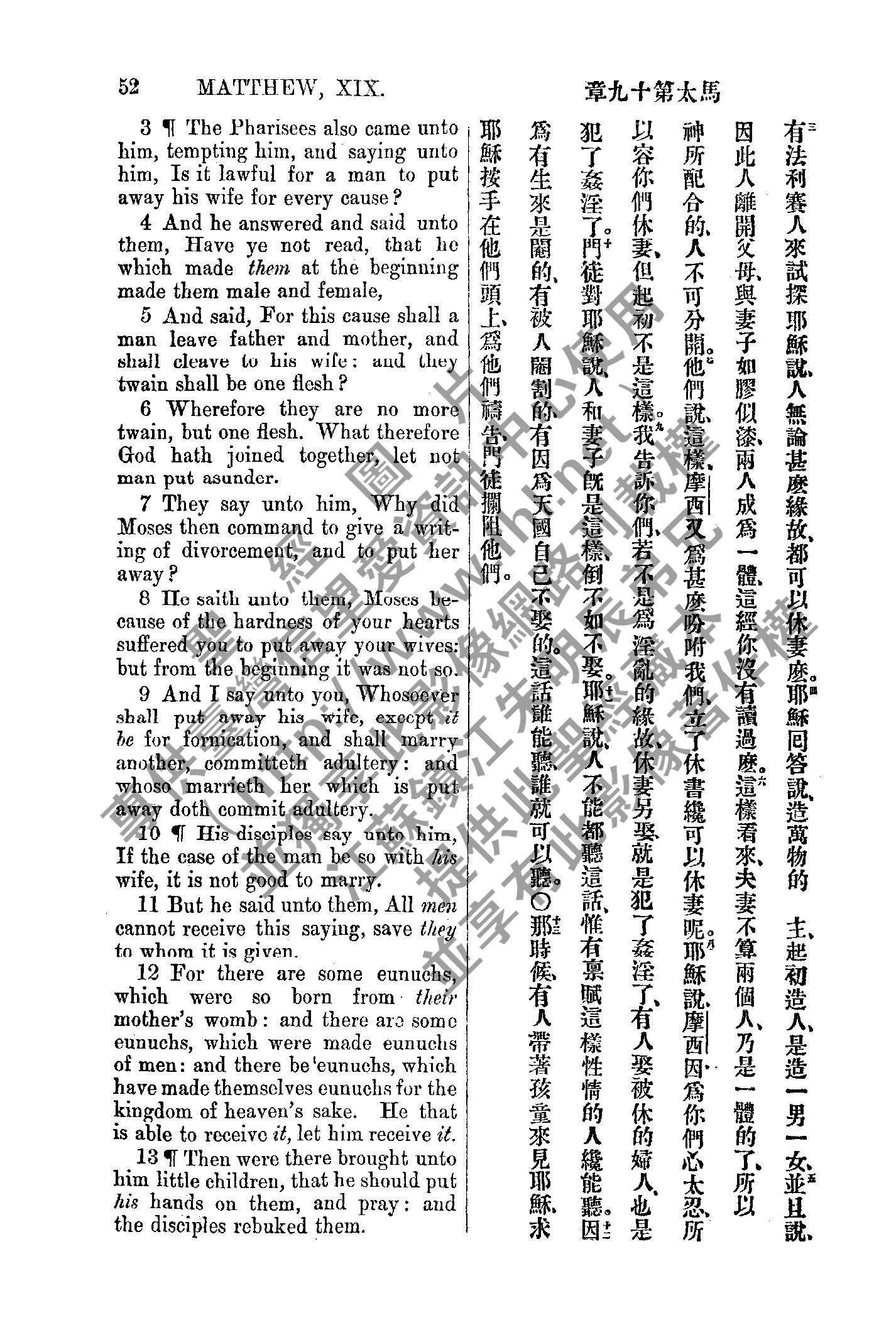 1885年新約全書 馬太福音 19 章 3 節到 19 章 13 節
