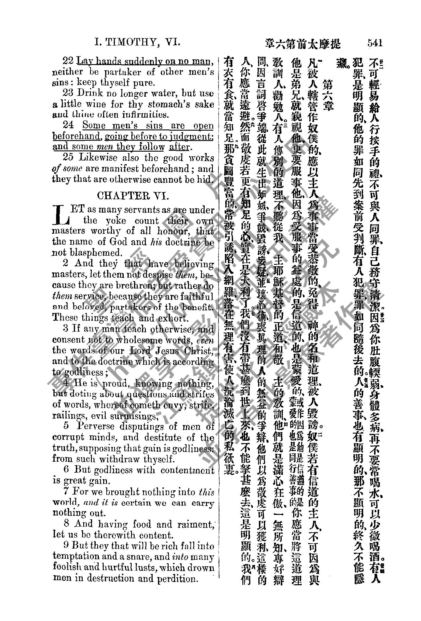 1885年新約全書 提摩太前書 5 章 22 節到 6 章 9 節