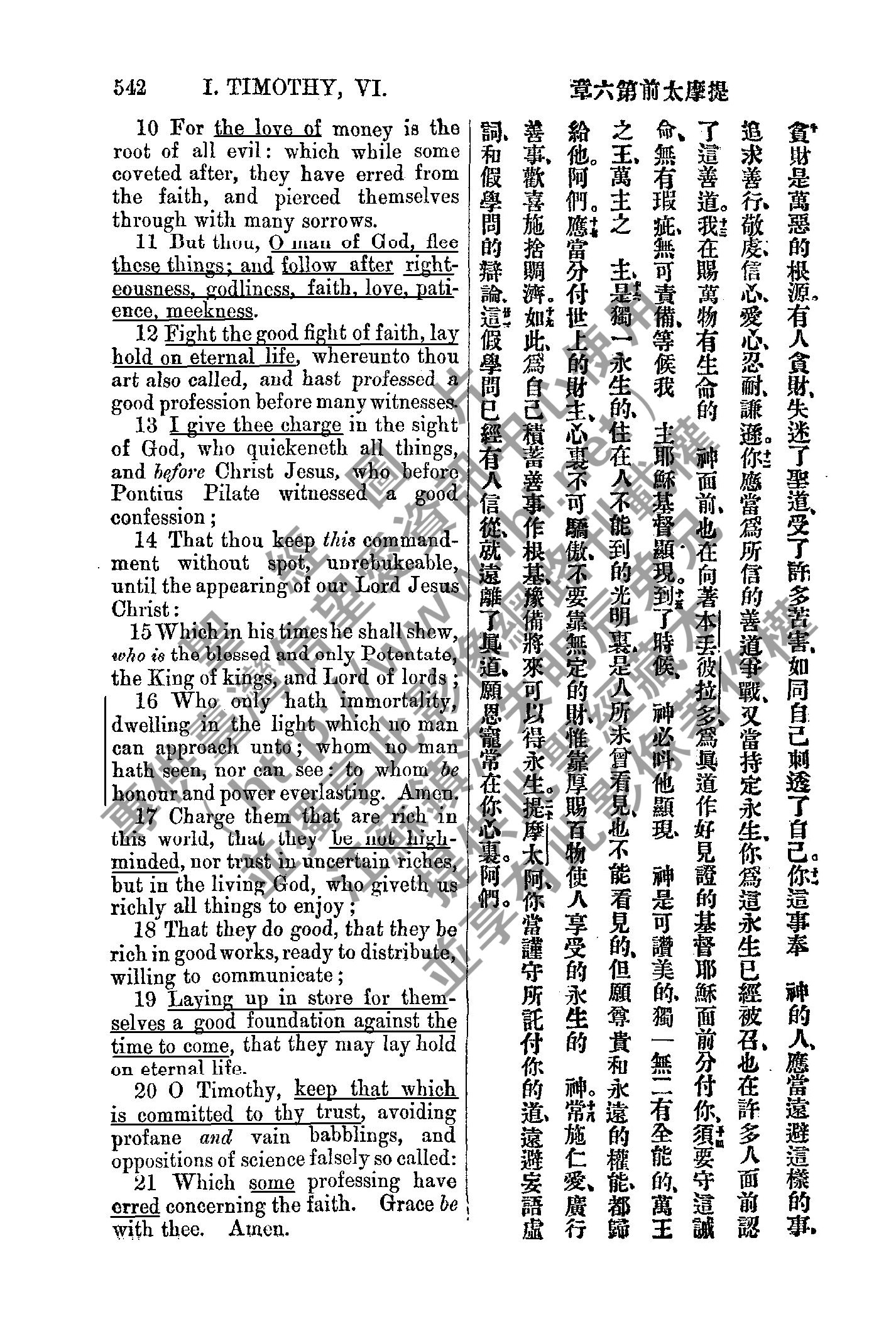 1885年新約全書 提摩太前書 6 章 10 節到 6 章 21 節