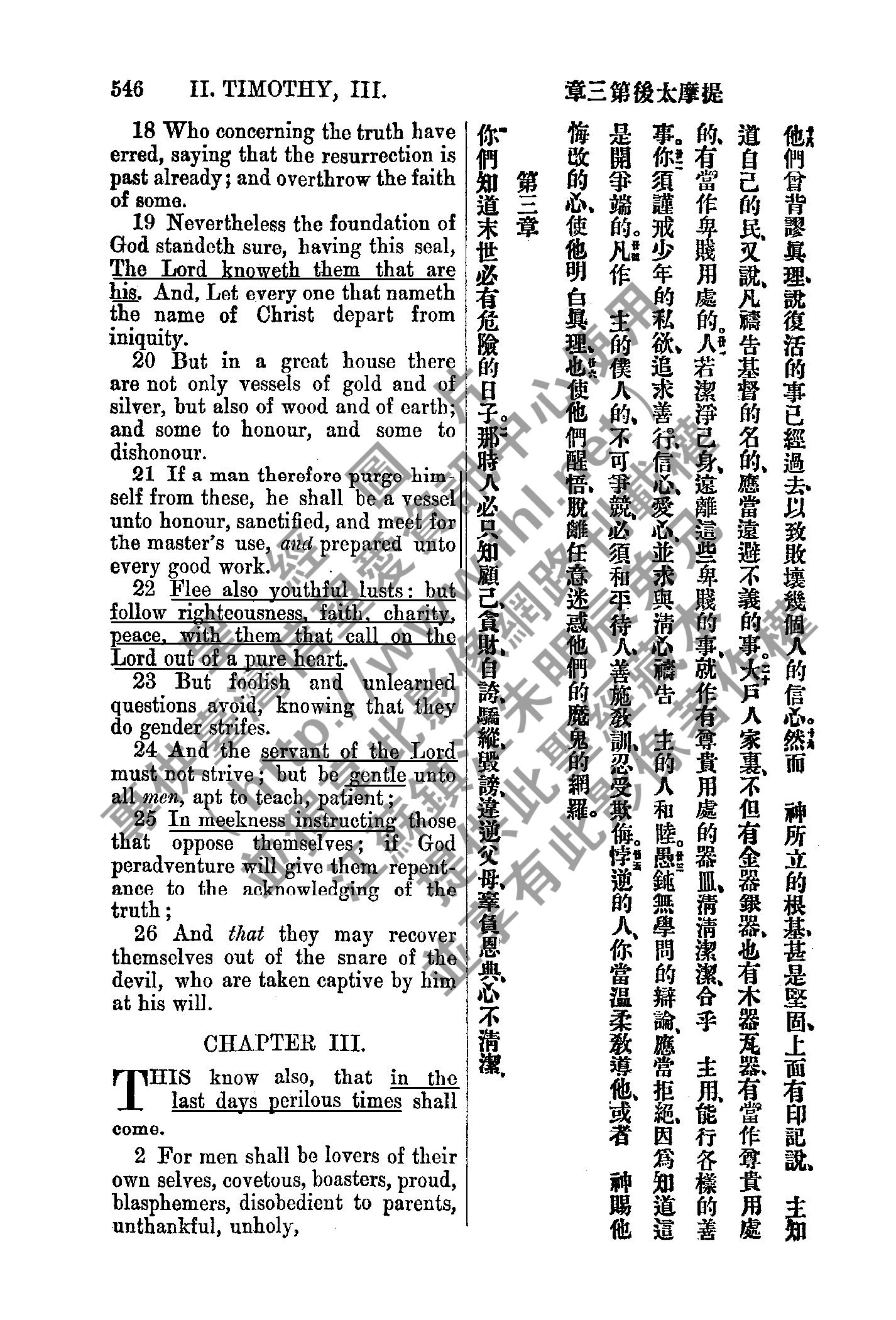 1885年新約全書 提摩太後書 2 章 18 節到 3 章 2 節