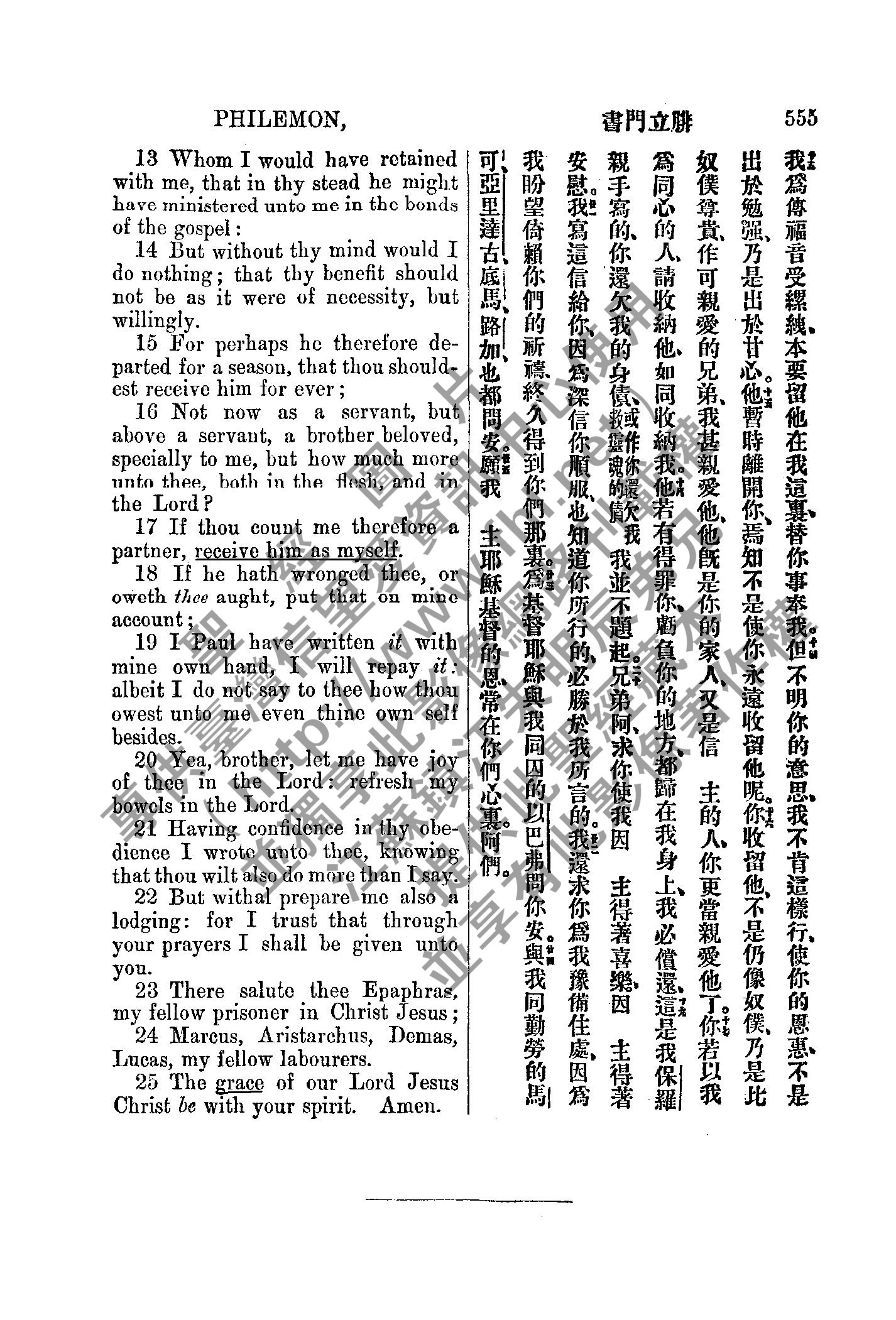1885年新約全書 腓利門書 1 章 13 節到 1 章 25 節