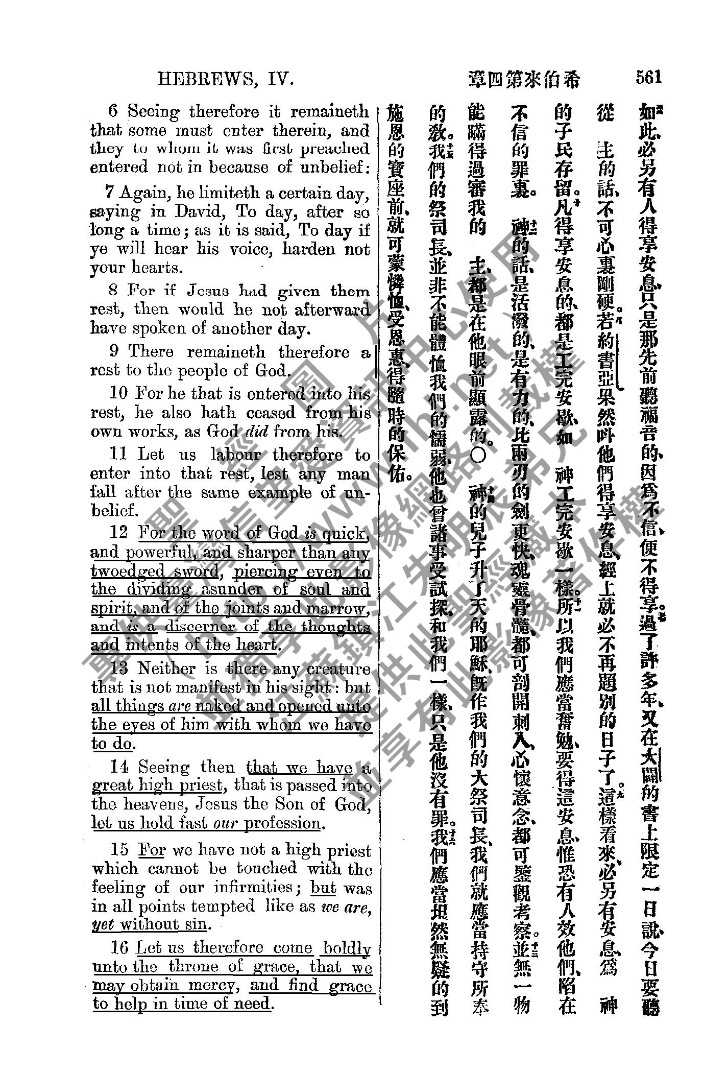 1885年新約全書 希伯來書 4 章 5 節到 4 章 16 節