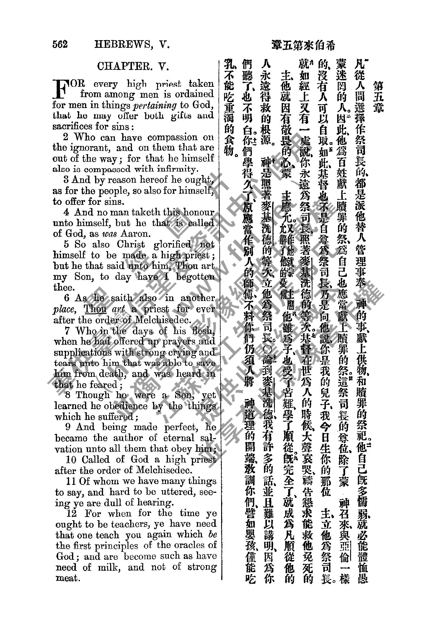 1885年新約全書 希伯來書 5 章 1 節到 5 章 12 節