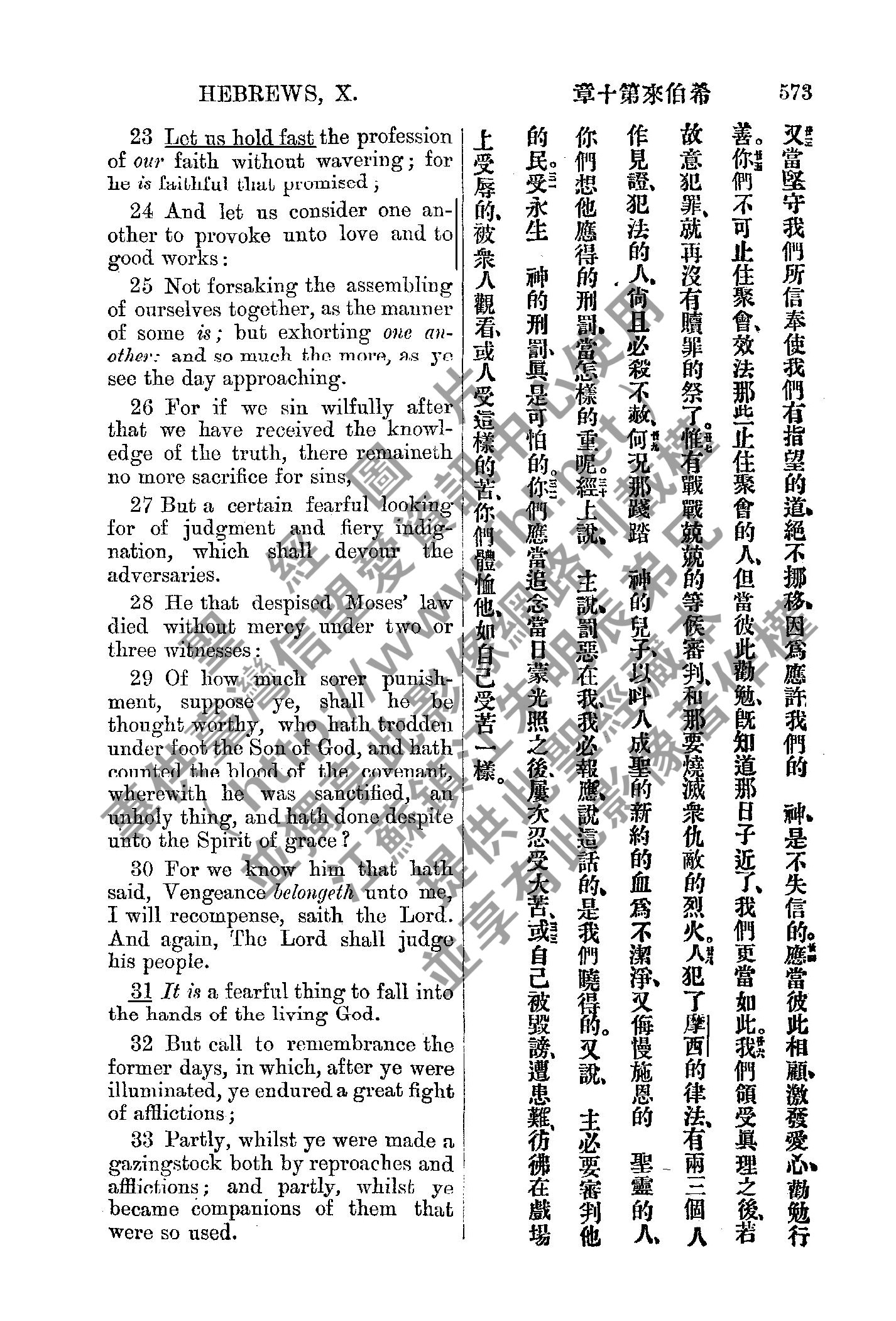 1885年新約全書 希伯來書 10 章 22 節到 10 章 33 節