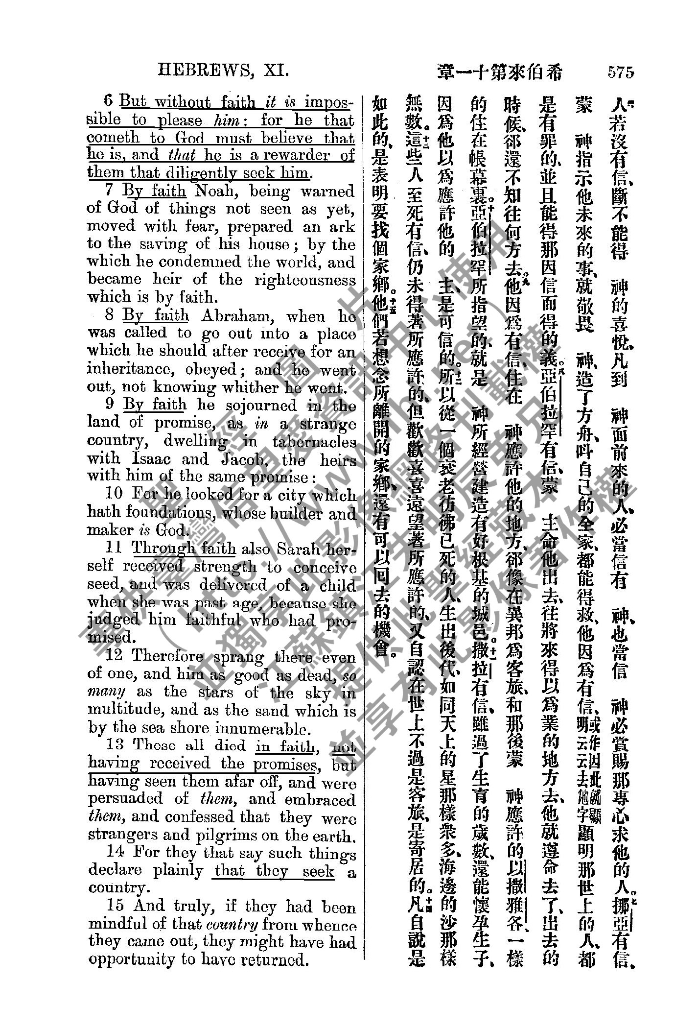 1885年新約全書 希伯來書 11 章 6 節到 11 章 15 節