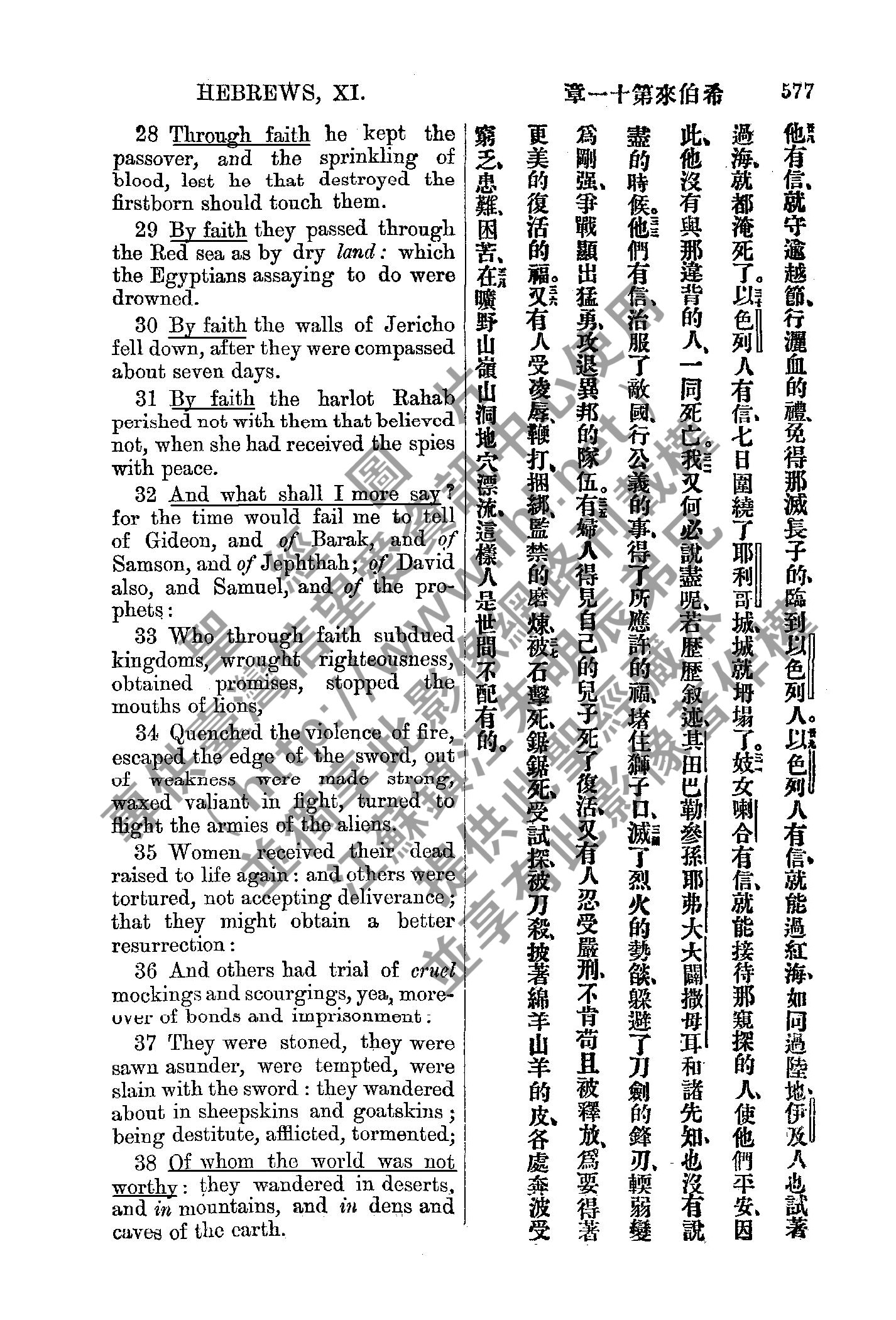 1885年新約全書 希伯來書 11 章 28 節到 11 章 38 節