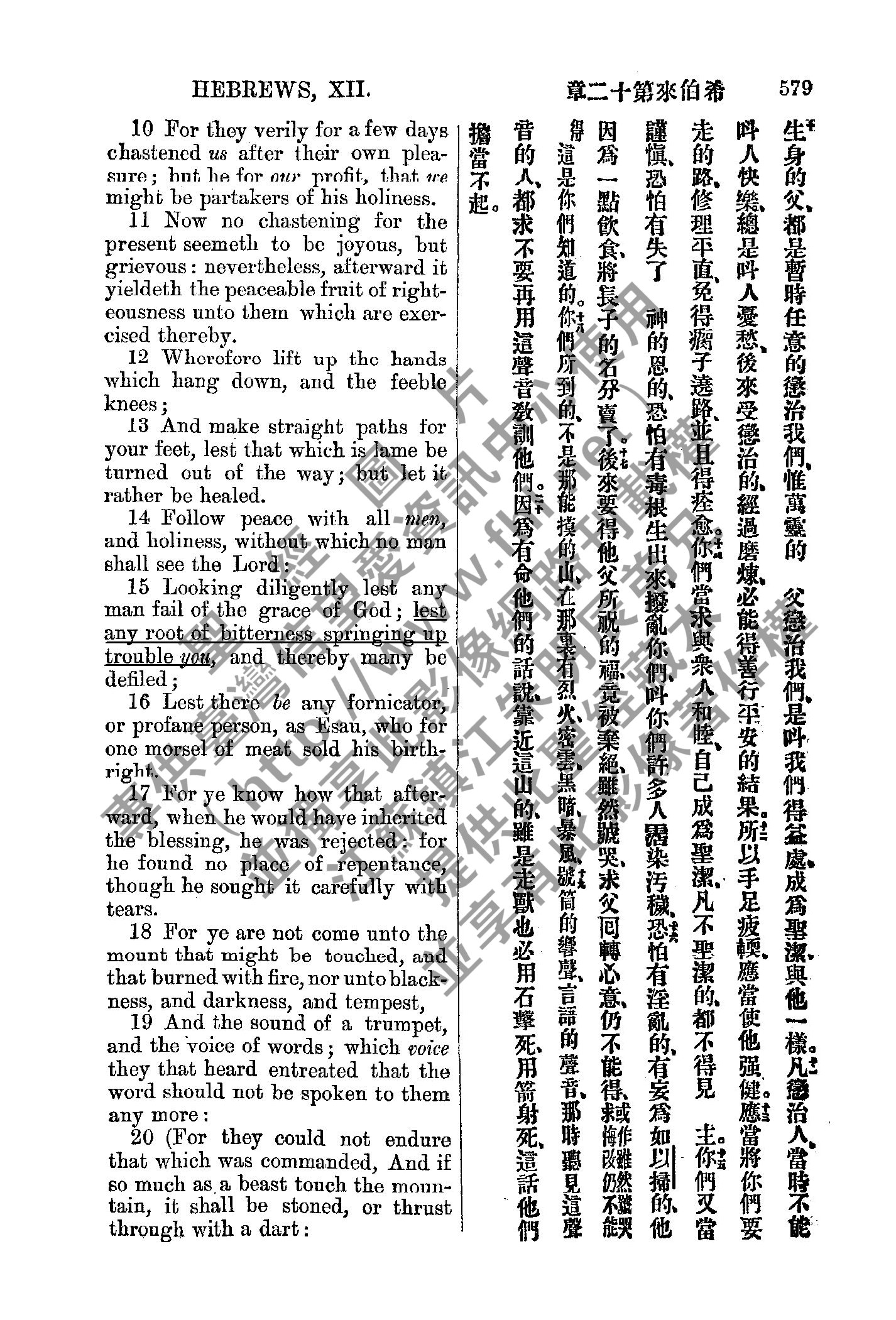 1885年新約全書 希伯來書 12 章 10 節到 12 章 20 節