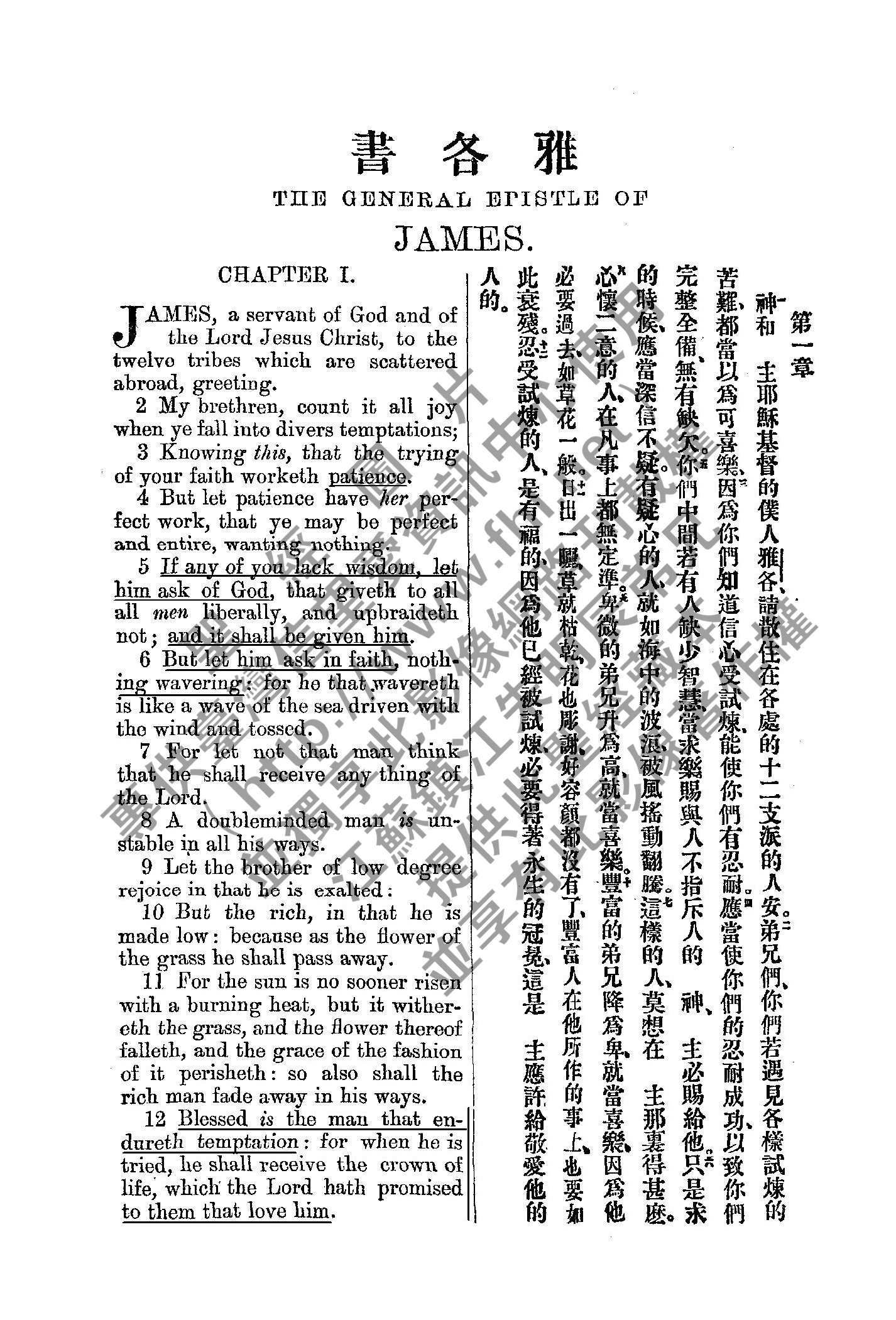 1885年新約全書 雅各書 1 章 1 節到 1 章 12 節