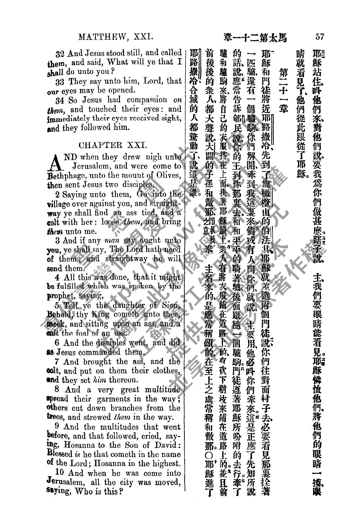 1885年新約全書 馬太福音 20 章 32 節到 21 章 10 節