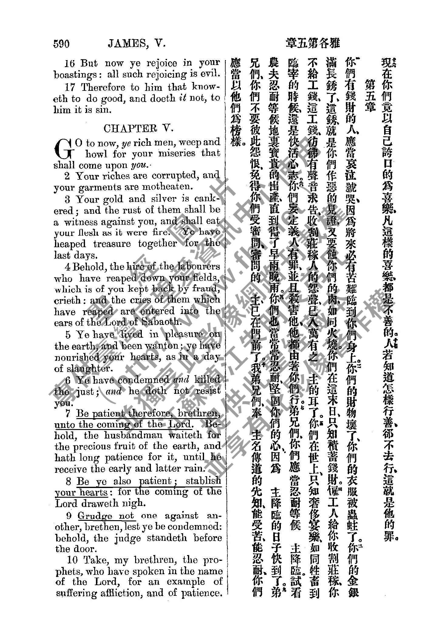 1885年新約全書 雅各書 4 章 16 節到 5 章 9 節
