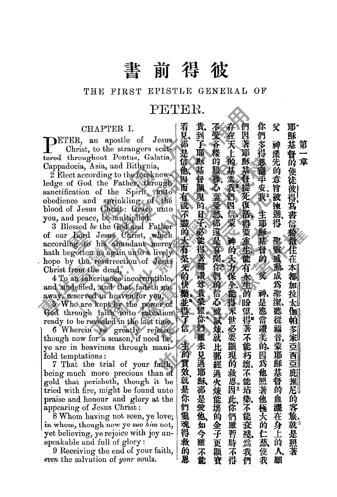 1885年新約全書 彼得前書 1 章 1 節到 1 章 9 節