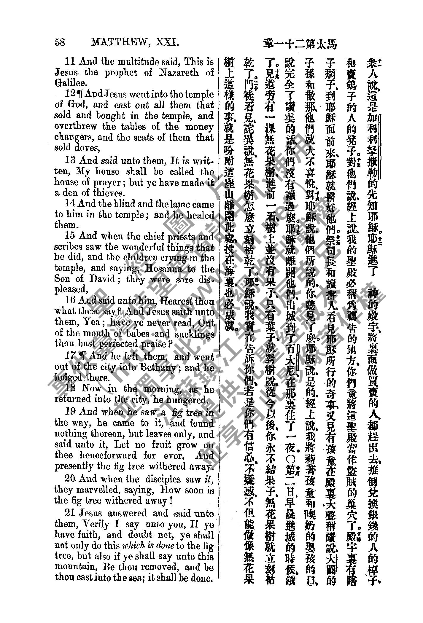 1885年新約全書 馬太福音 21 章 11 節到 21 章 21 節