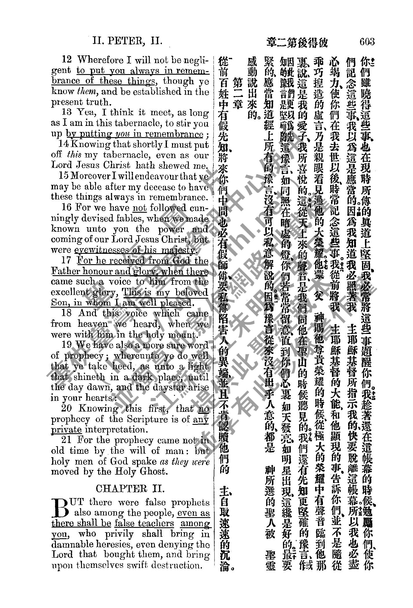 1885年新約全書 彼得後書 1 章 12 節到 2 章 1 節