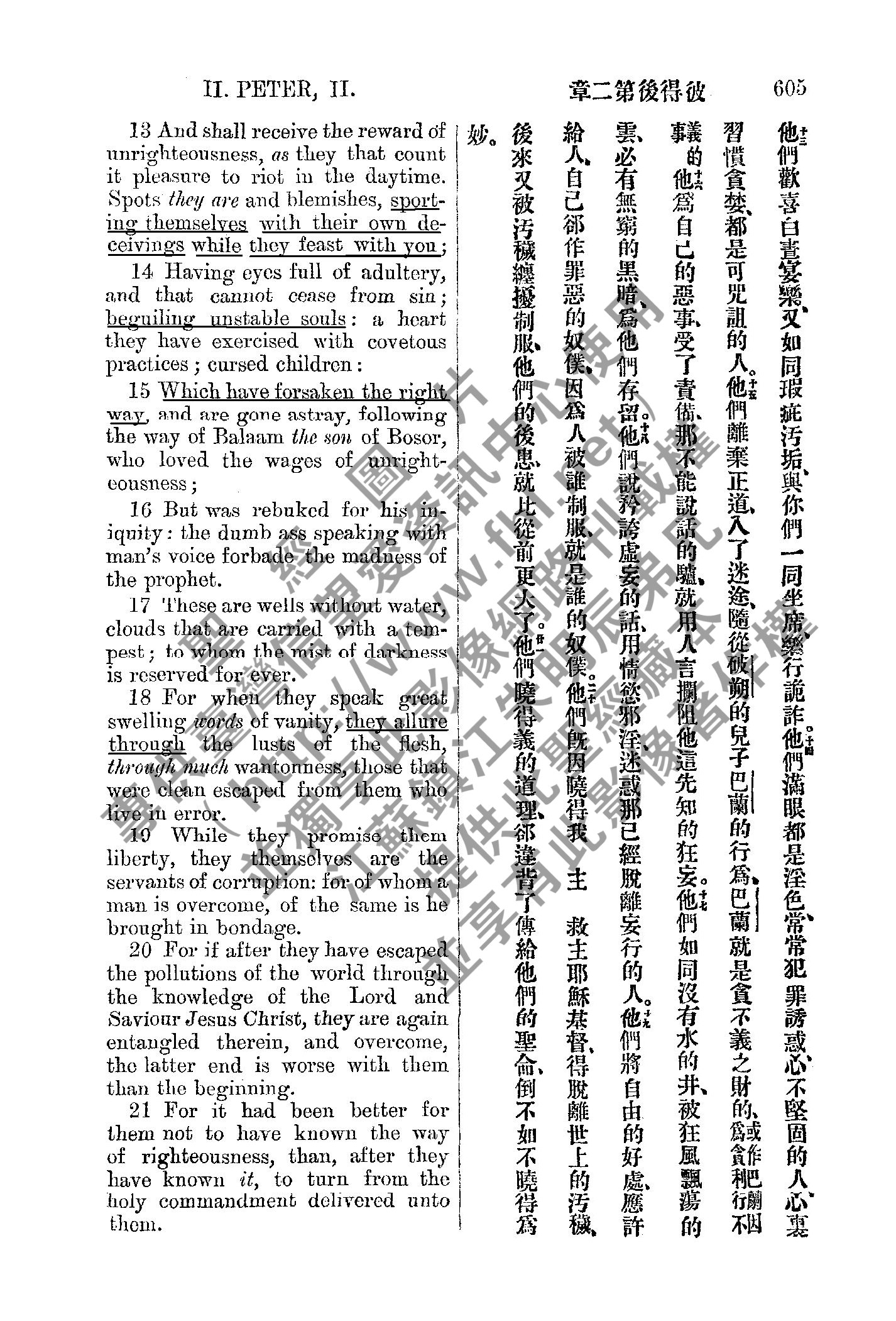 1885年新約全書 彼得後書 2 章 13 節到 2 章 21 節