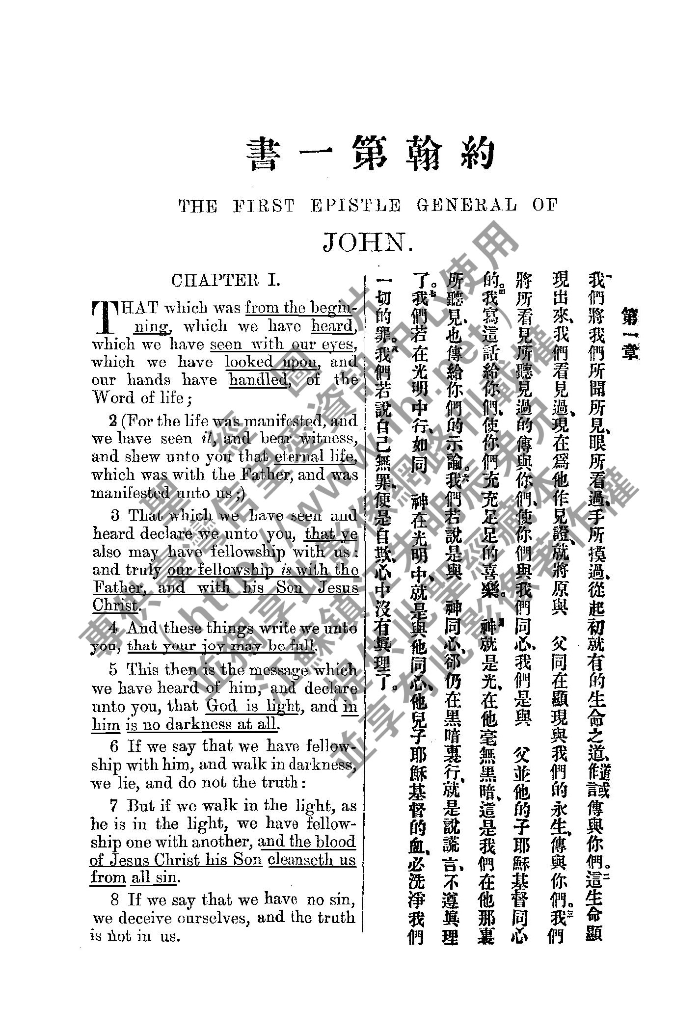 1885年新約全書 約翰一書 1 章 1 節到 1 章 8 節