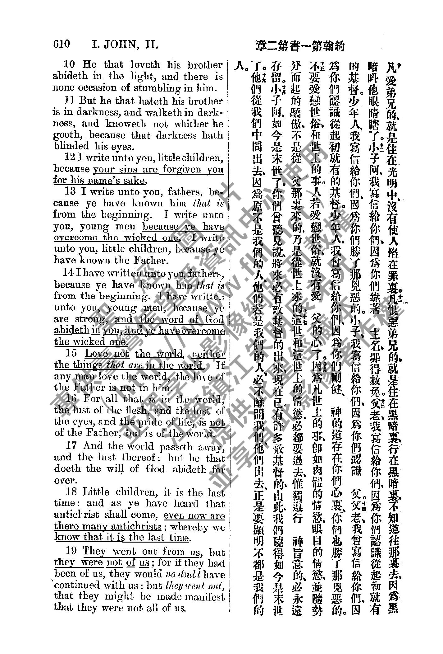 1885年新約全書 約翰一書 2 章 10 節到 2 章 19 節