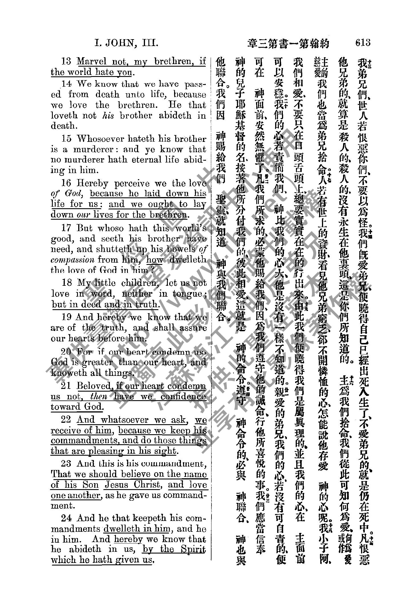 1885年新約全書 約翰一書 3 章 13 節到 3 章 24 節