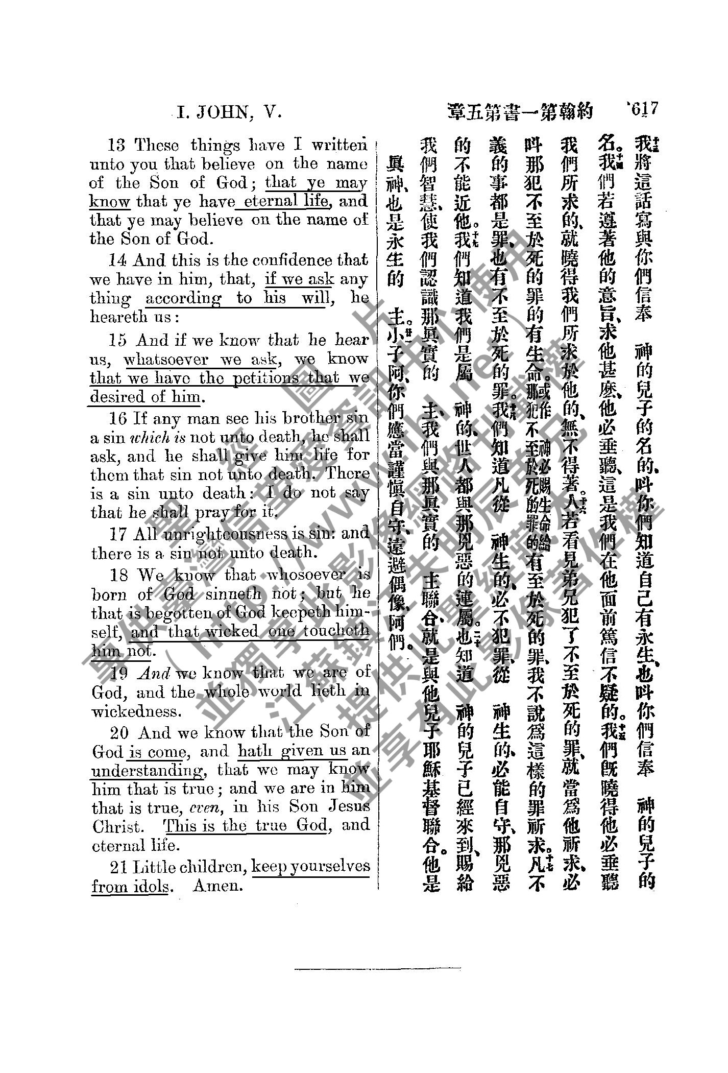 1885年新約全書 約翰一書 5 章 13 節到 5 章 21 節