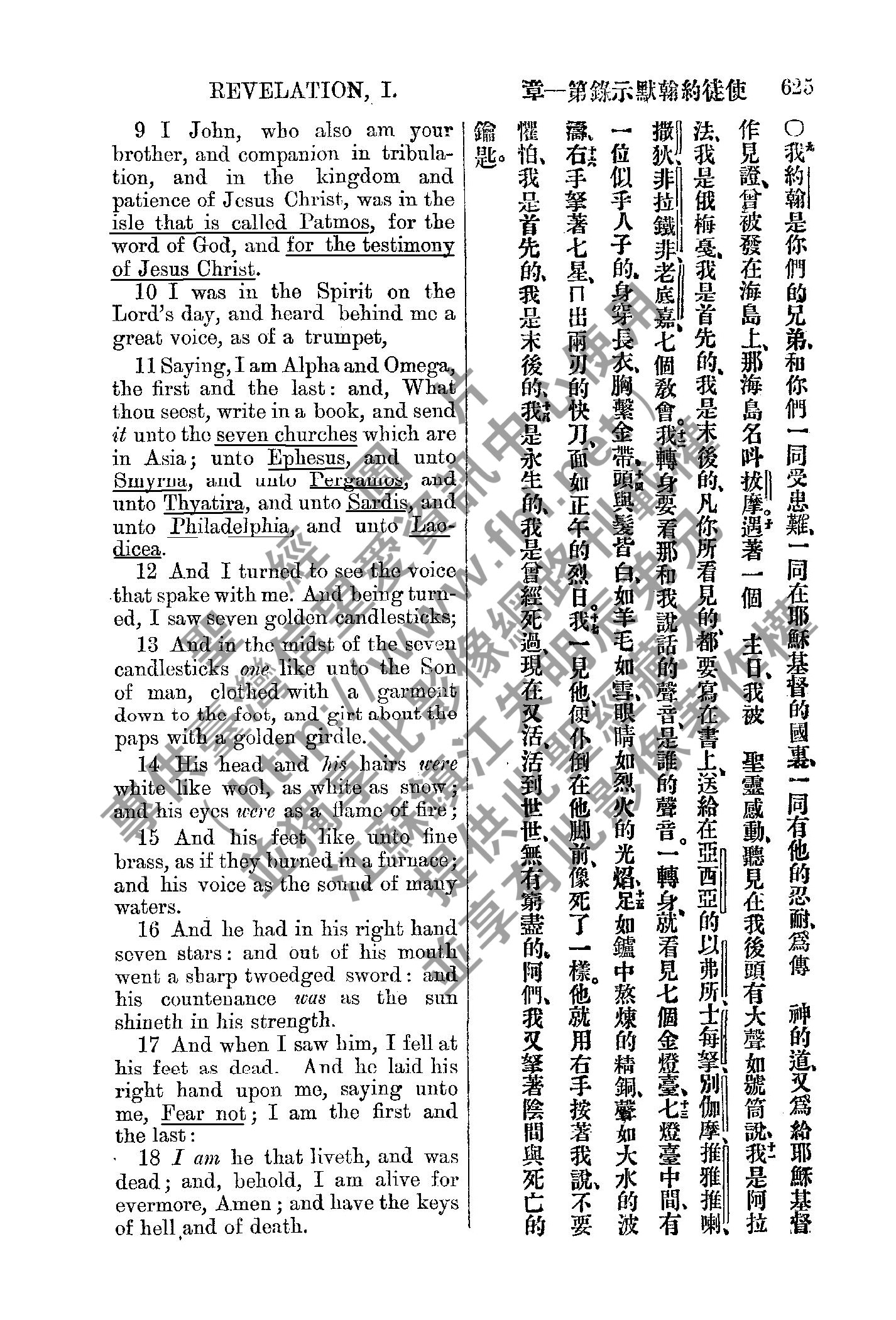 1885年新約全書 啟示錄 1 章 9 節到 1 章 18 節