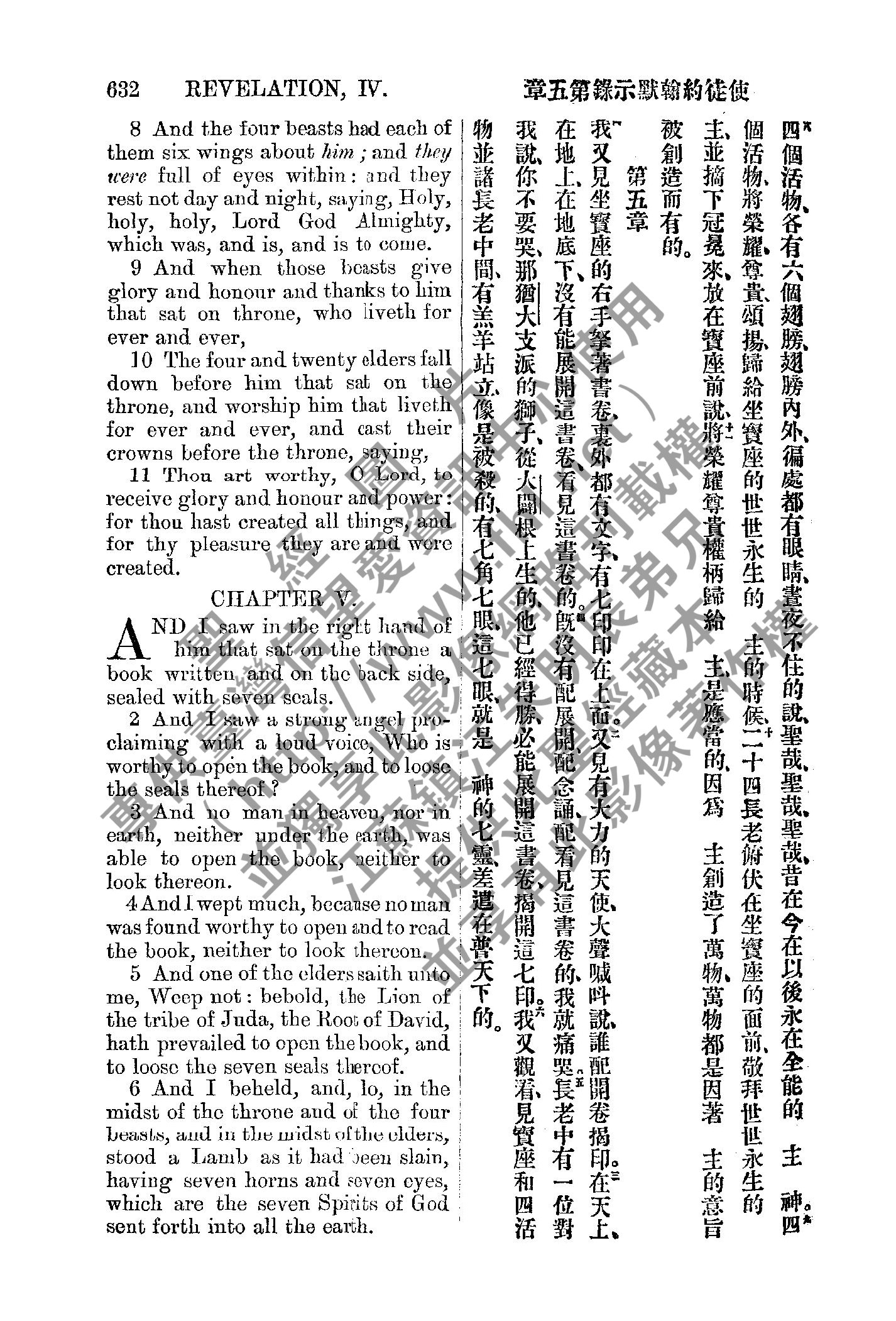 1885年新約全書 啟示錄 4 章 5 節到 5 章 6 節