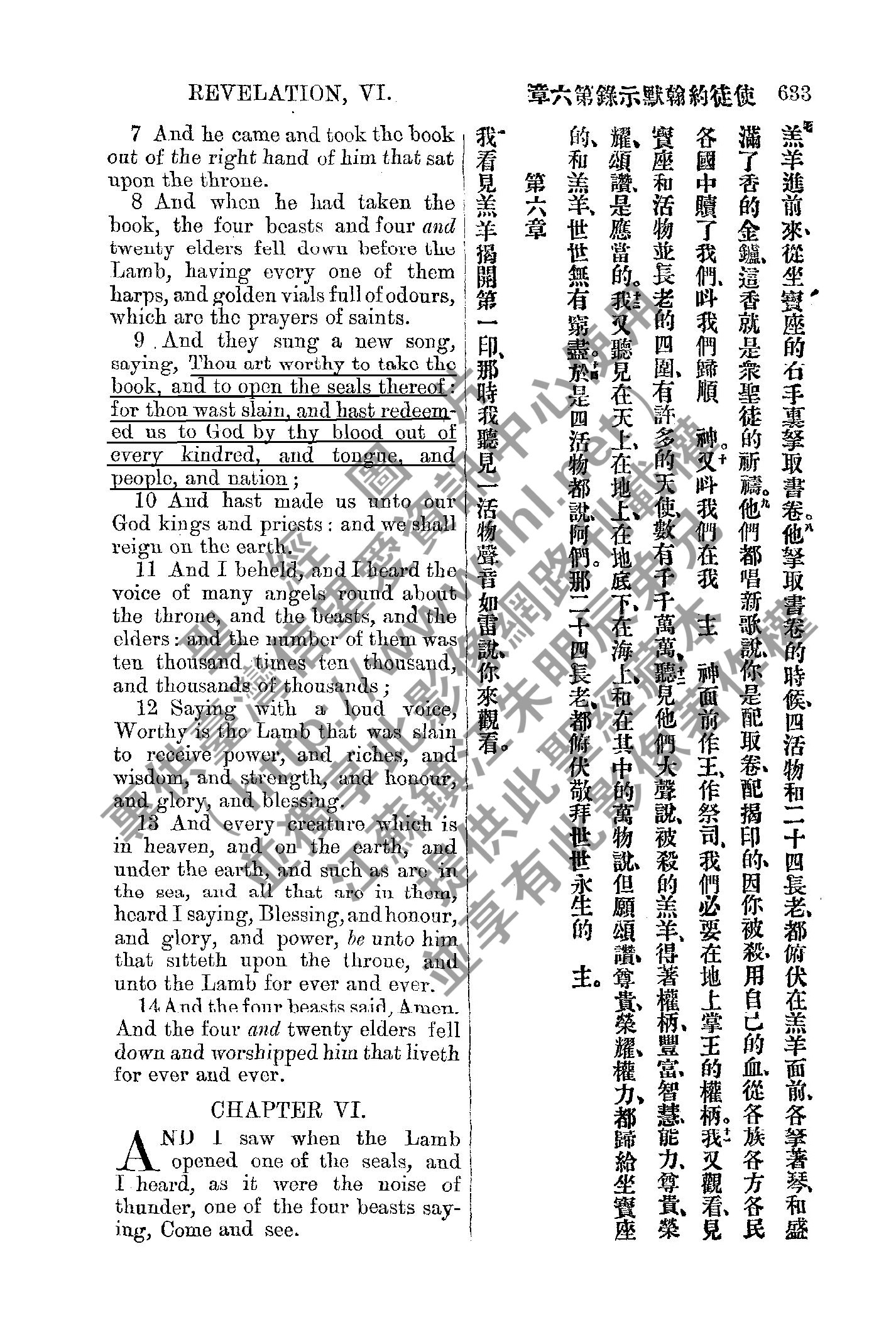 1885年新約全書 啟示錄 5 章 7 節到 6 章 1 節