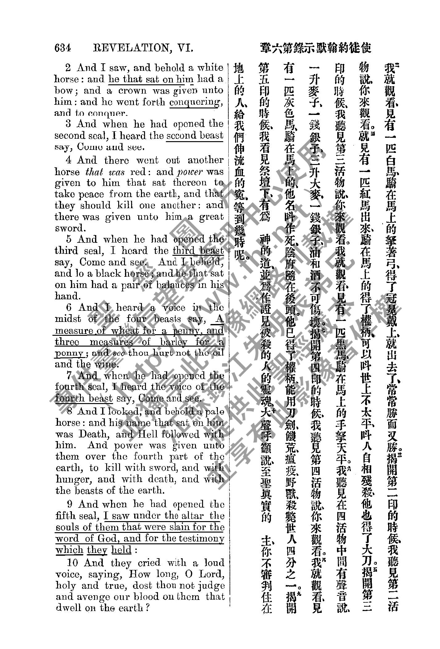 1885年新約全書 啟示錄 6 章 2 節到 6 章 10 節