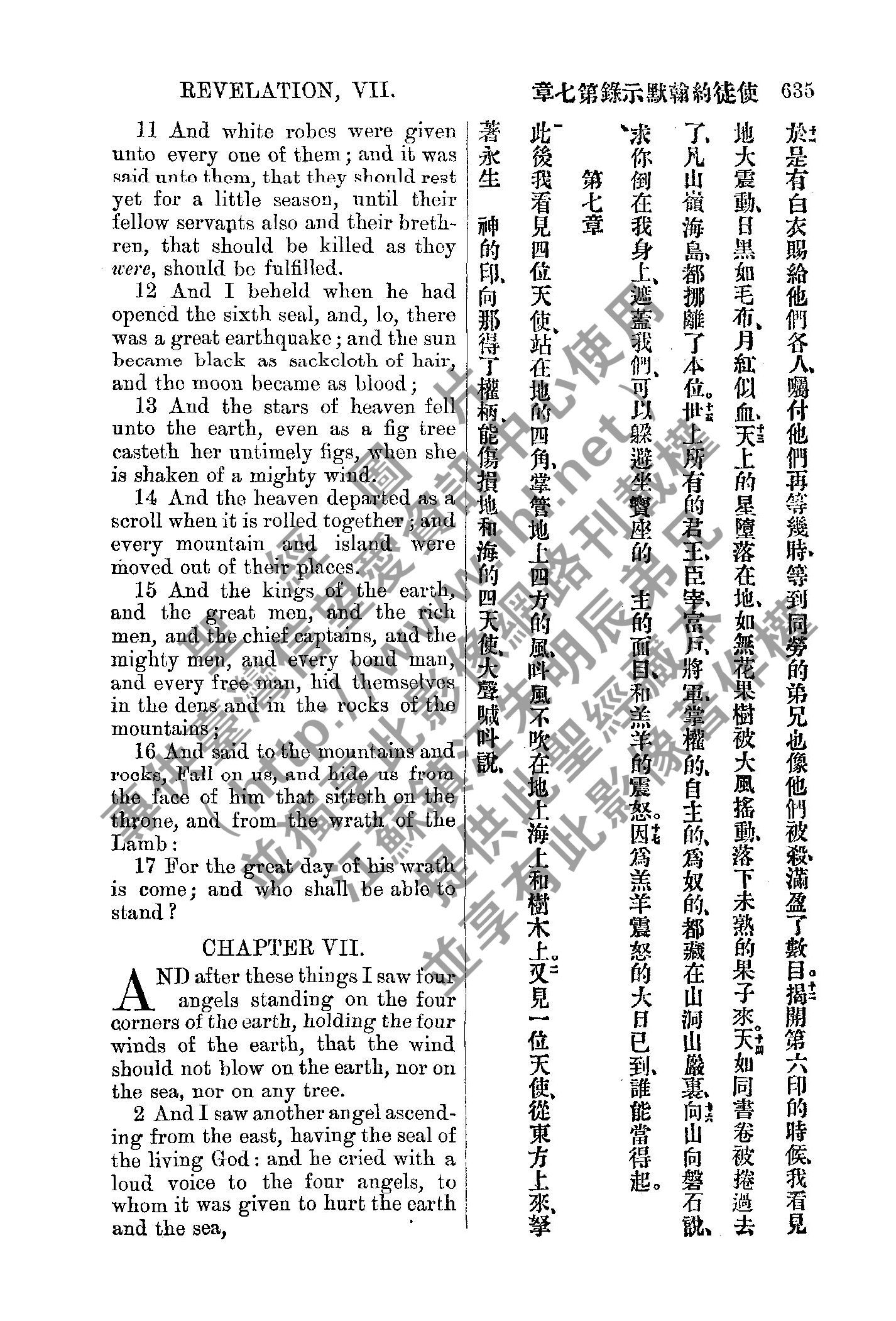 1885年新約全書 啟示錄 6 章 11 節到 7 章 2 節