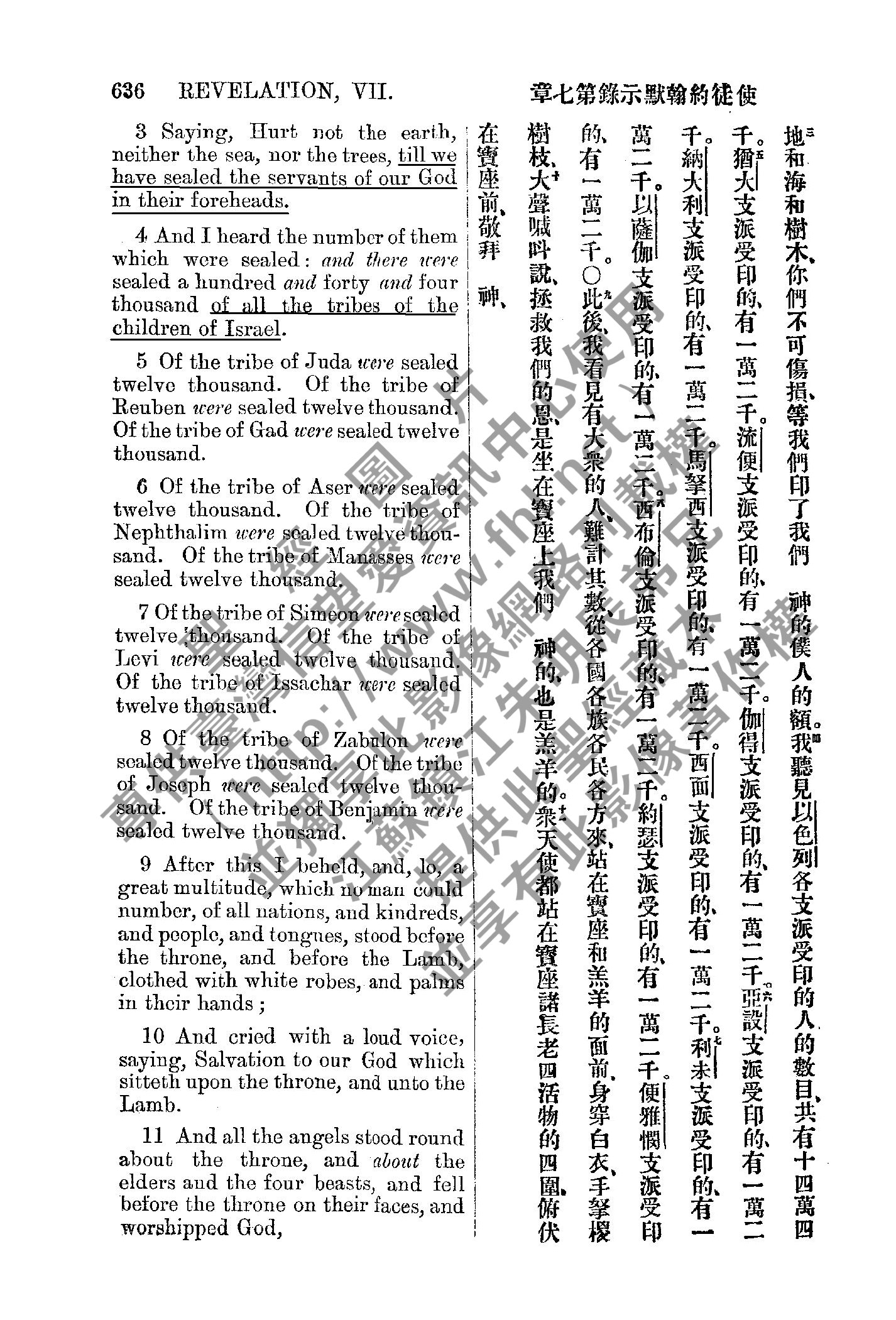 1885年新約全書 啟示錄 7 章 3 節到 7 章 11 節