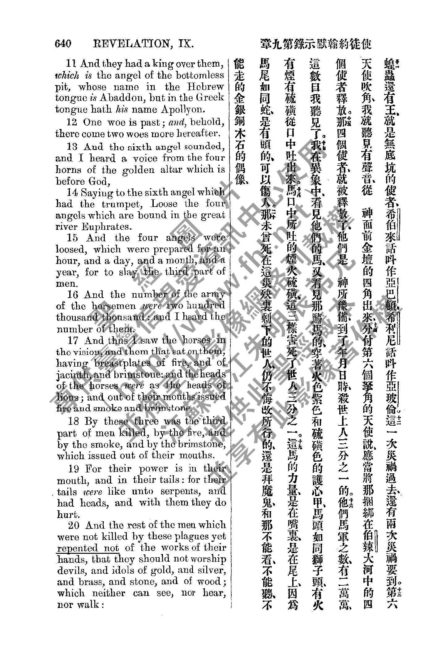 1885年新約全書 啟示錄 9 章 11 節到 9 章 20 節