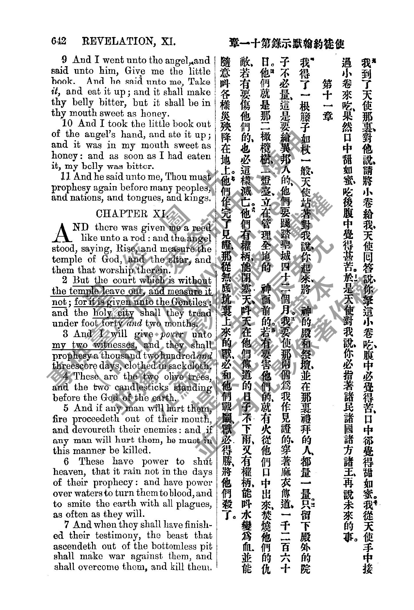 1885年新約全書 啟示錄 10 章 9 節到 11 章 7 節