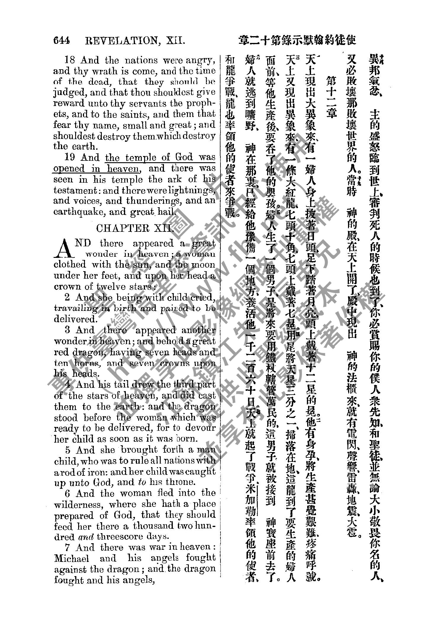 1885年新約全書 啟示錄 11 章 18 節到 12 章 7 節