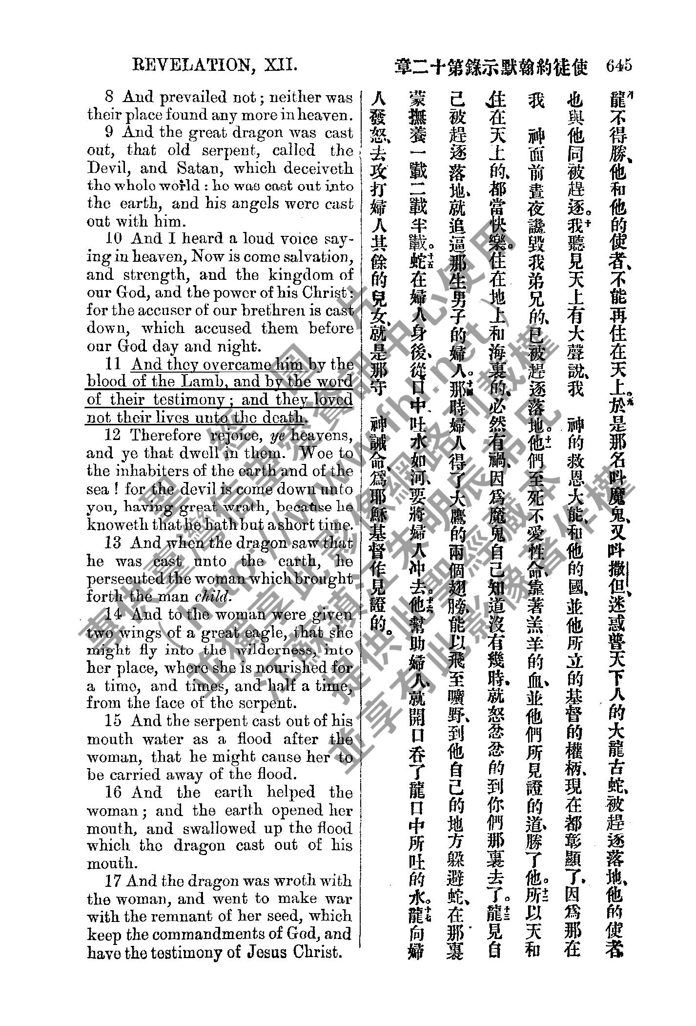 1885年新約全書 啟示錄 12 章 8 節到 12 章 17 節