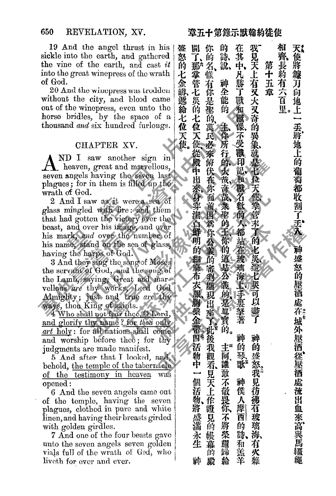 1885年新約全書 啟示錄 14 章 19 節到 15 章 7 節