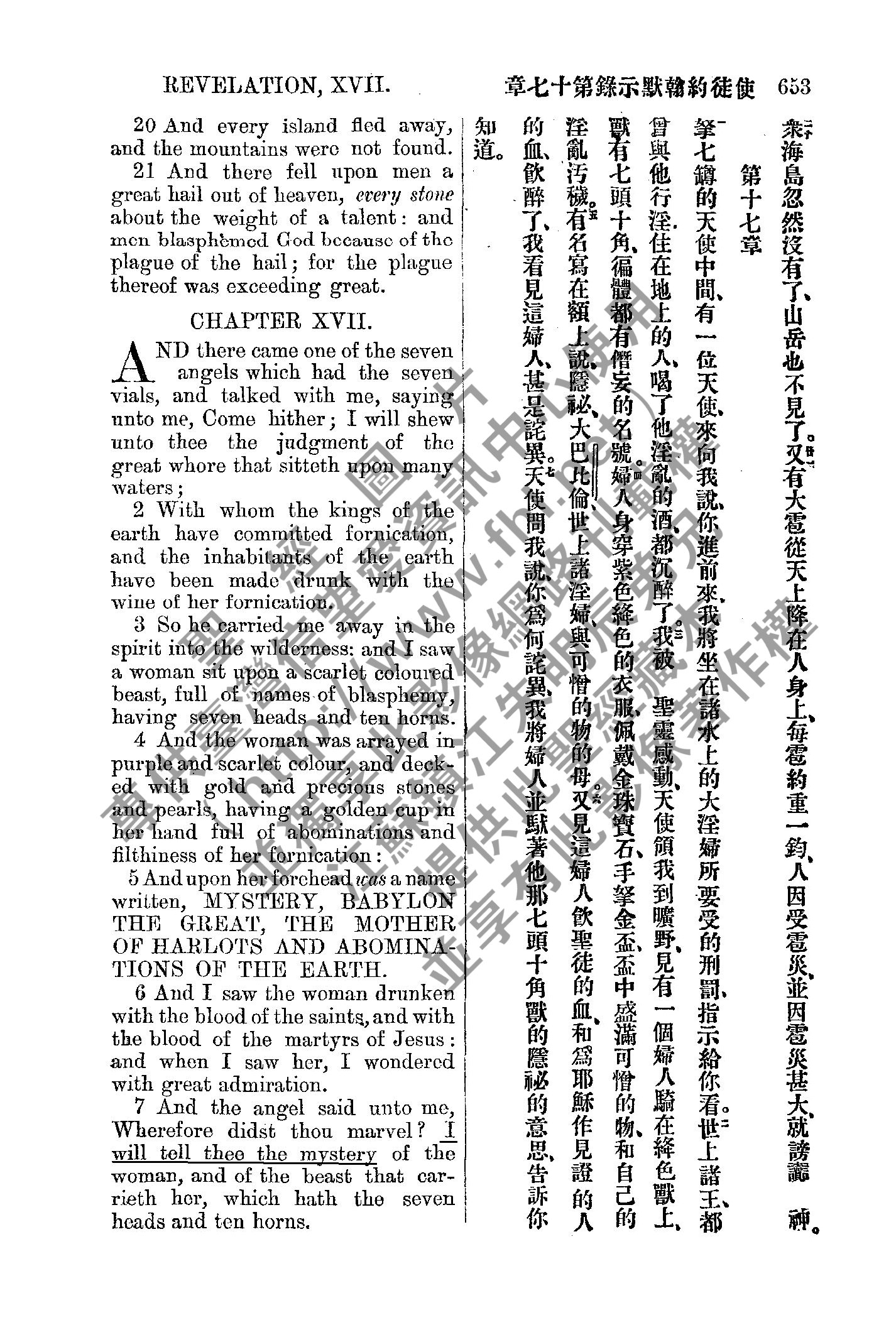 1885年新約全書 啟示錄 16 章 20 節到 17 章 7 節