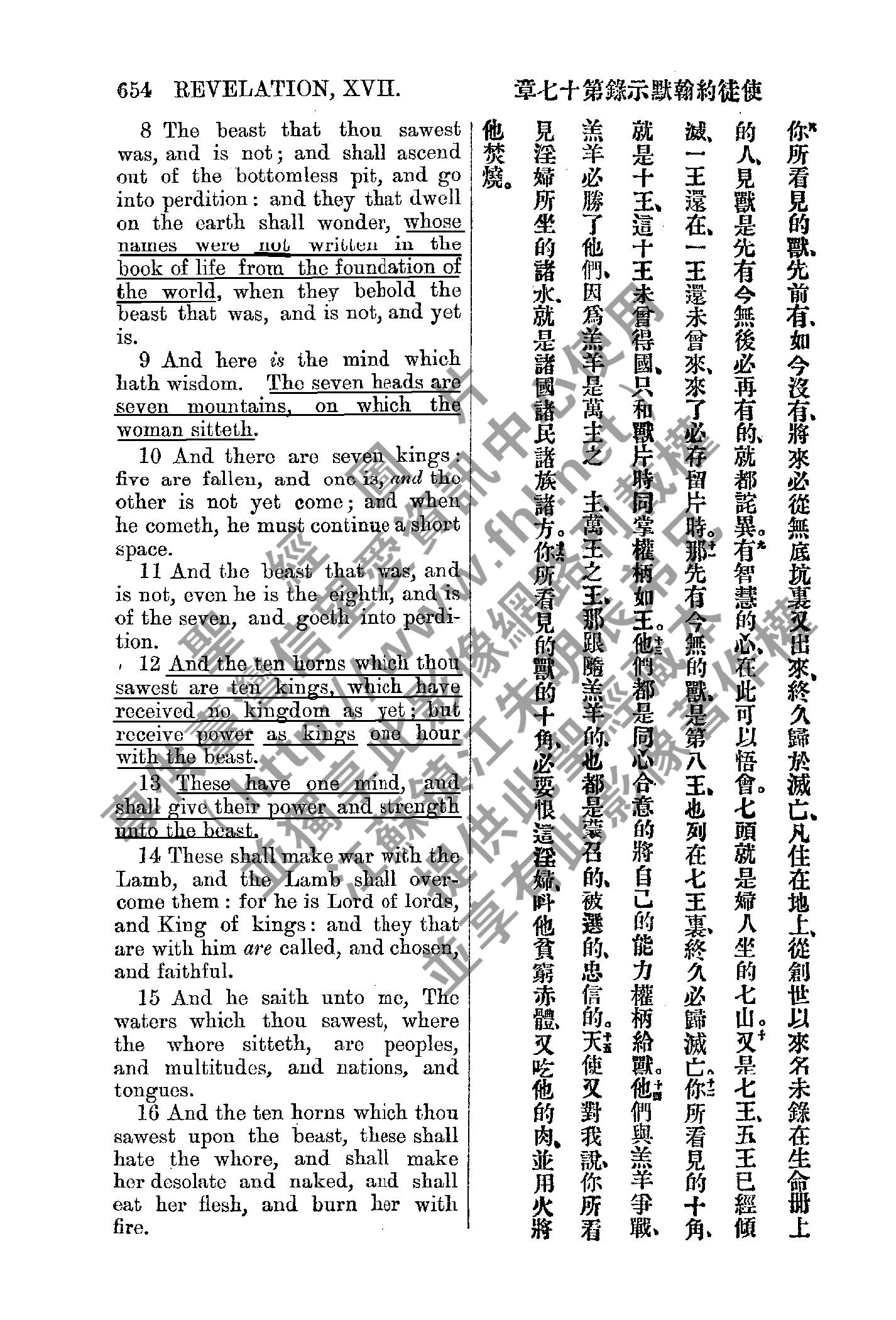 1885年新約全書 啟示錄 17 章 8 節到 17 章 16 節