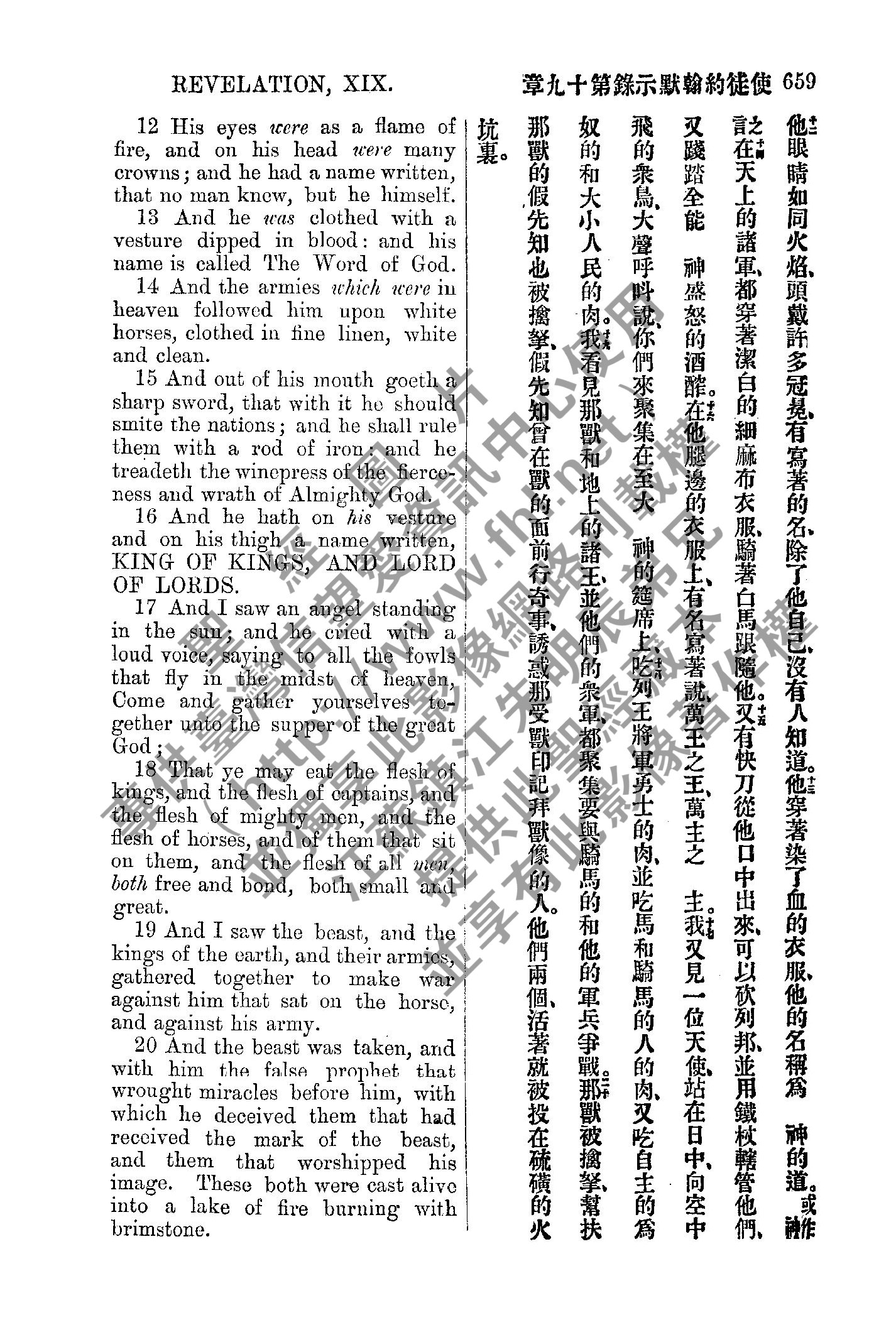 1885年新約全書 啟示錄 19 章 12 節到 19 章 20 節